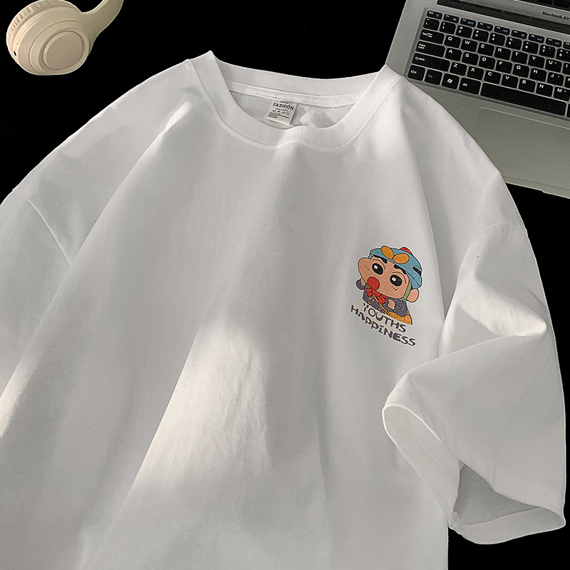 크레용 신 새로운 인쇄 반팔 티셔츠 남성용 여름 느슨한 중량급 최고 유행 브랜드 유행 캐주얼 세븐 포인트 슬리브