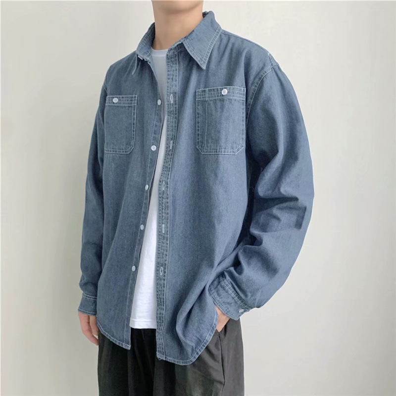 젊은 및 중년 데님 셔츠 남성용 얇은 재킷 느슨한 플러스 사이즈 긴팔 셔츠 작업 선 스크린 탑 옷스토어 가기
