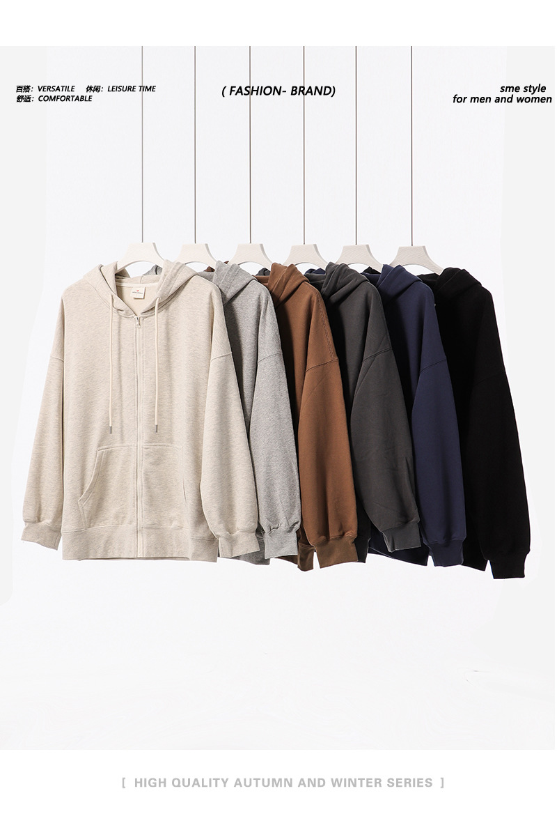 봄과 가을 370g 무거운 큰 테리 후드 지퍼 스웨터 남성 미국 조수 브랜드 지구 컬러 코트 후드 도매