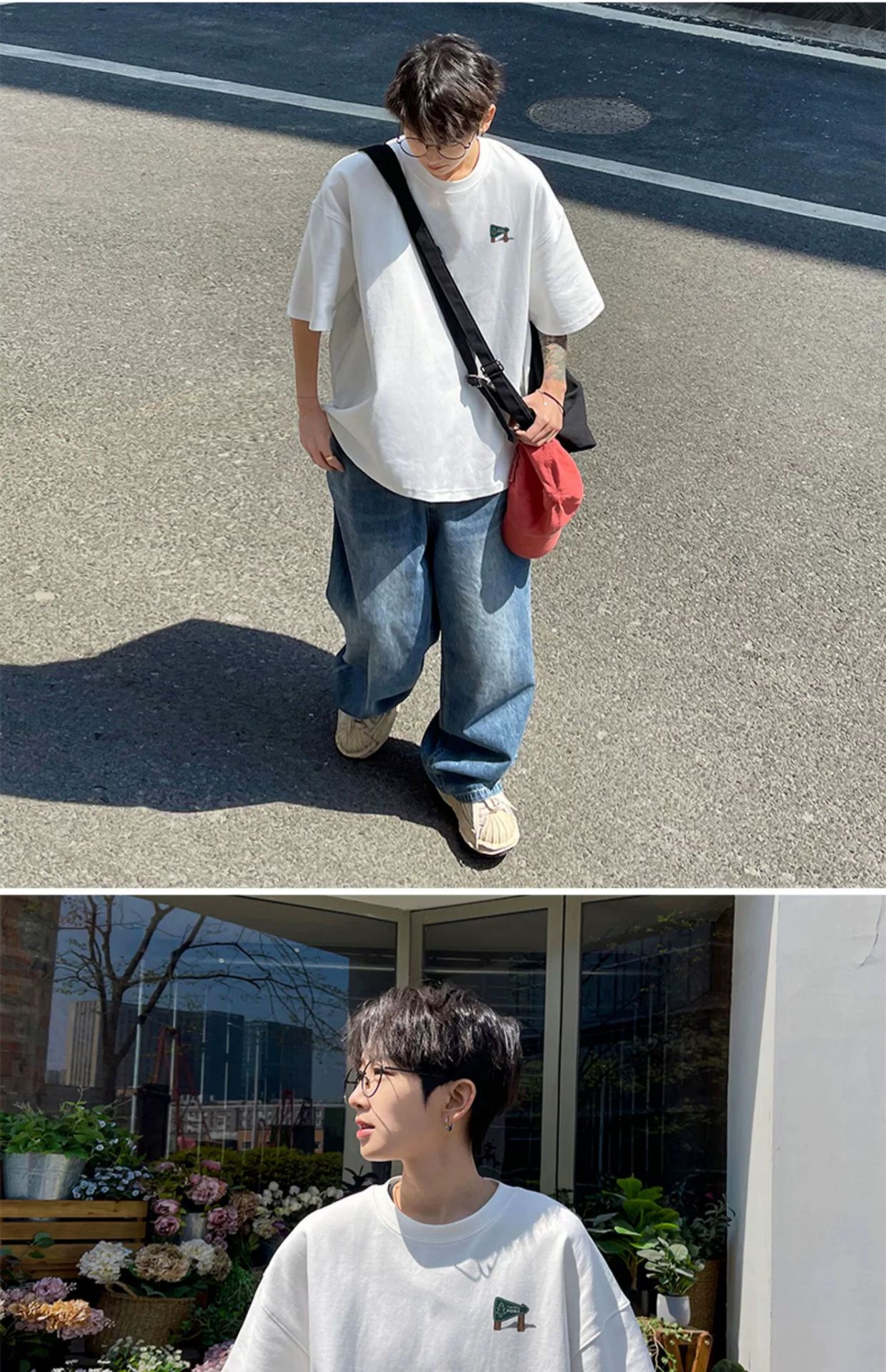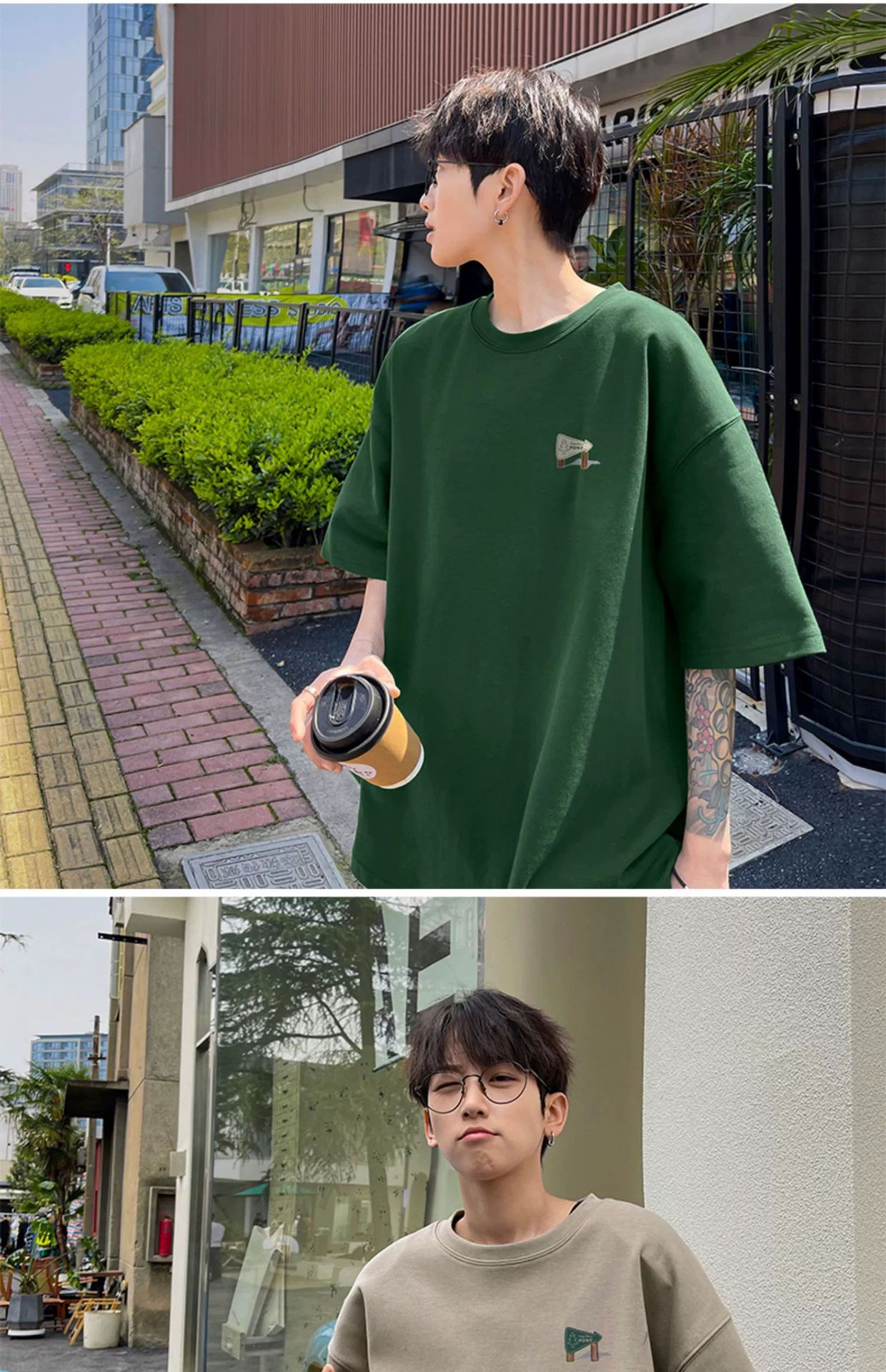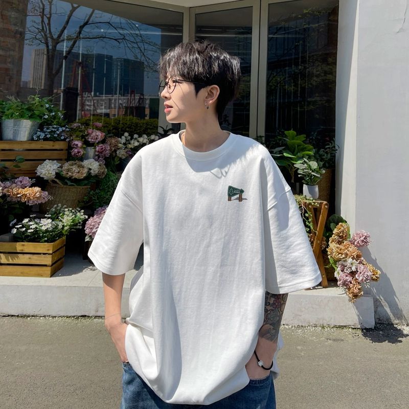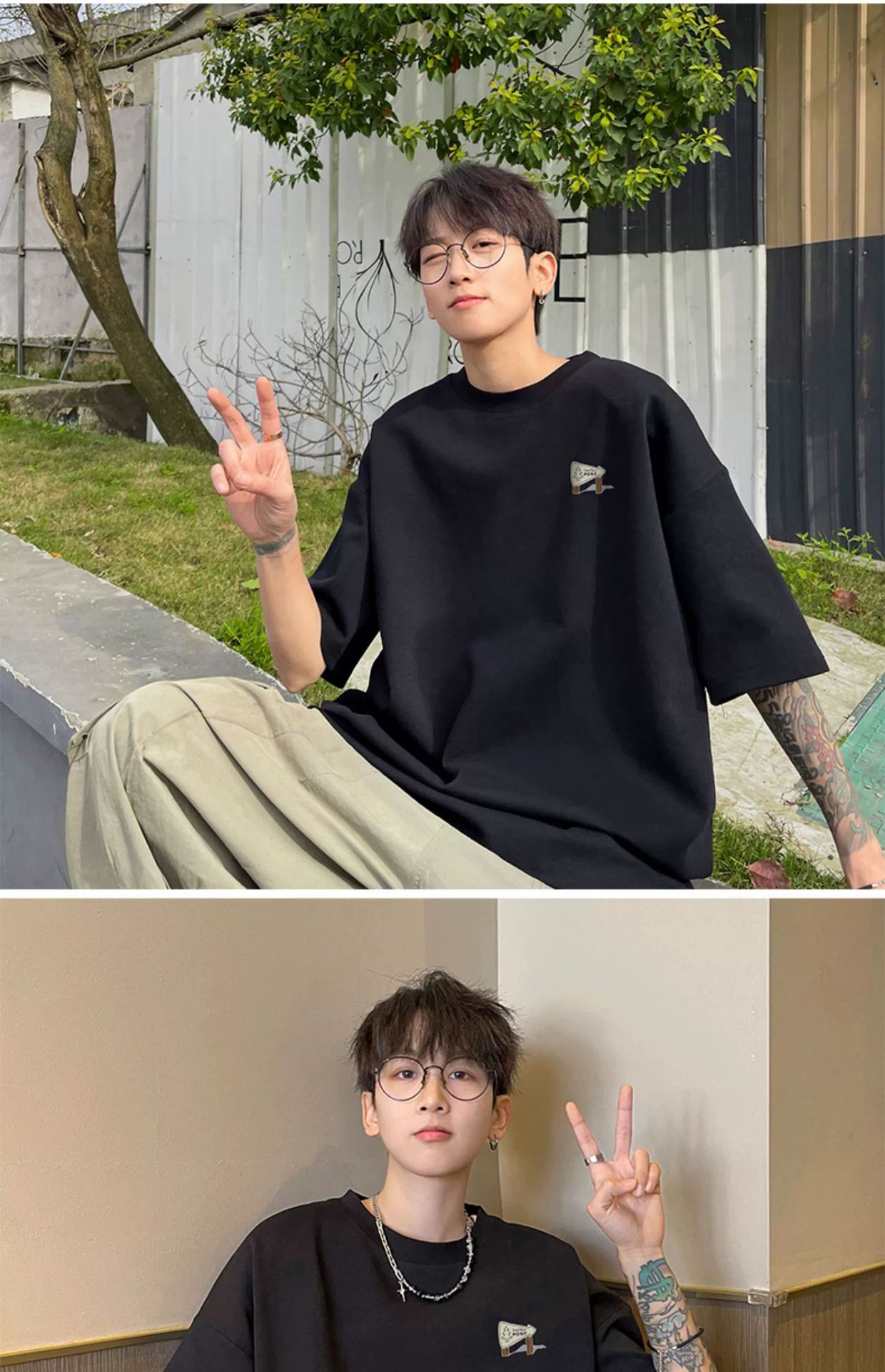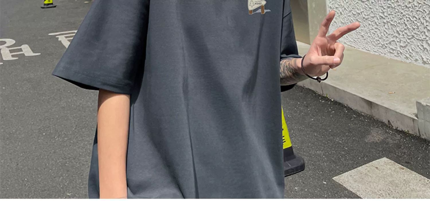 180g 무거운 짧은 소매 티셔츠 남자의 여름 패션 브랜드 반 소매 느슨한 크루 넥 티셔츠 캐주얼 탑스토어 가기