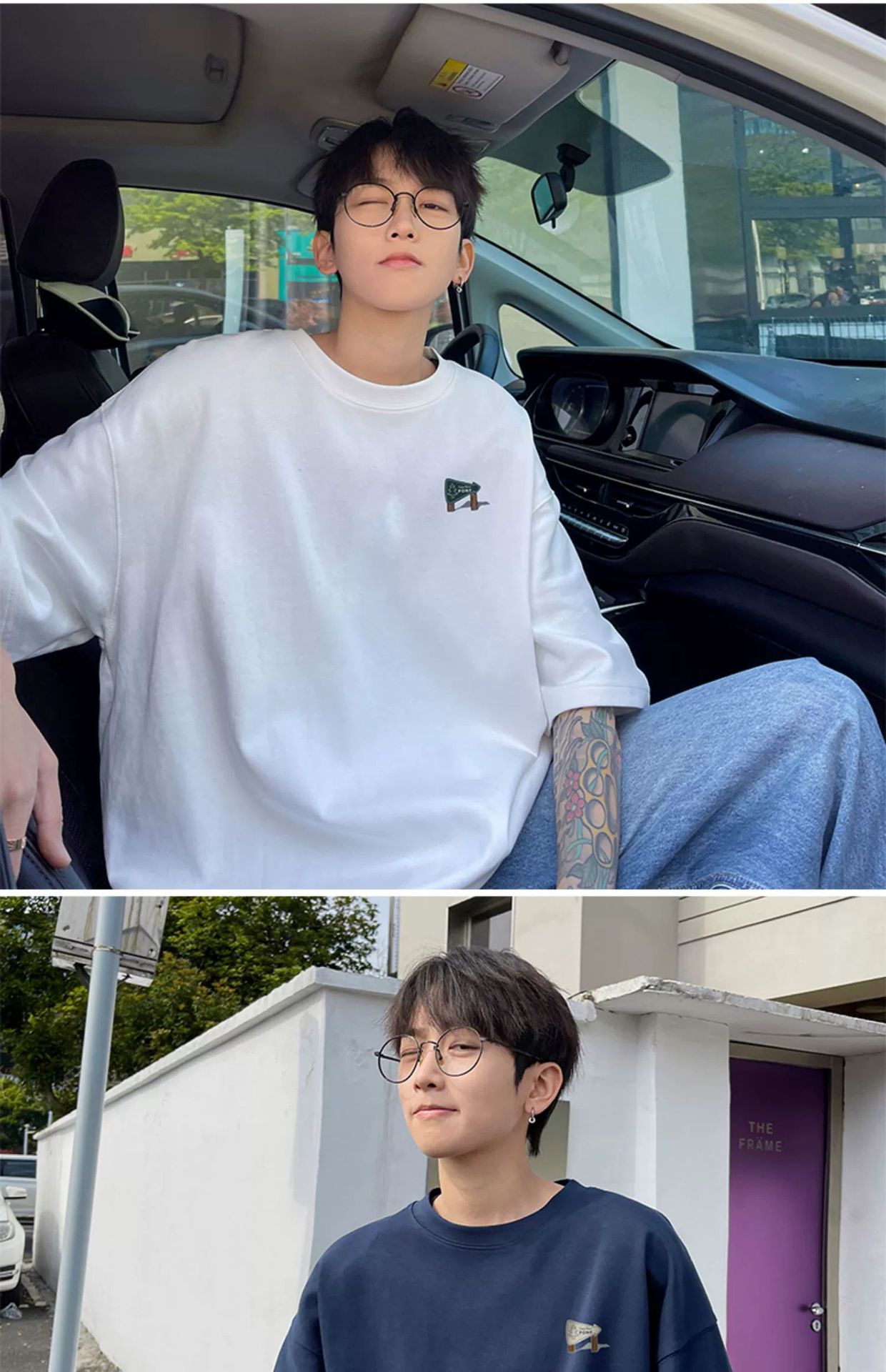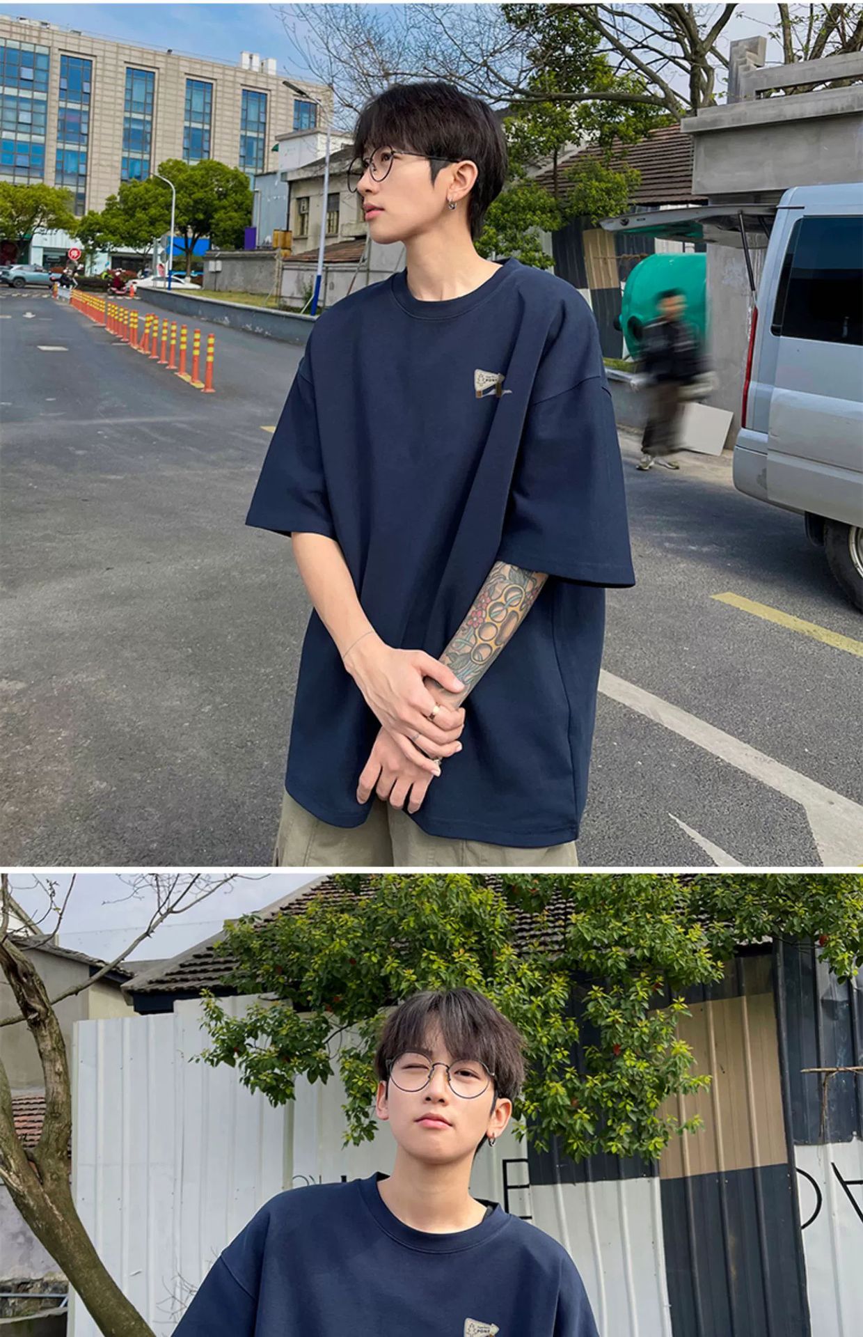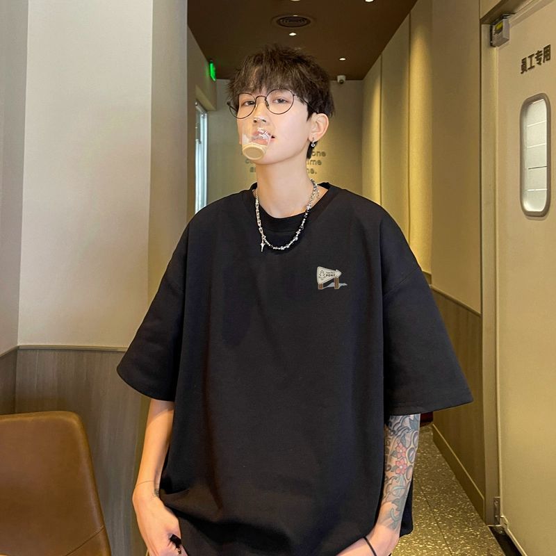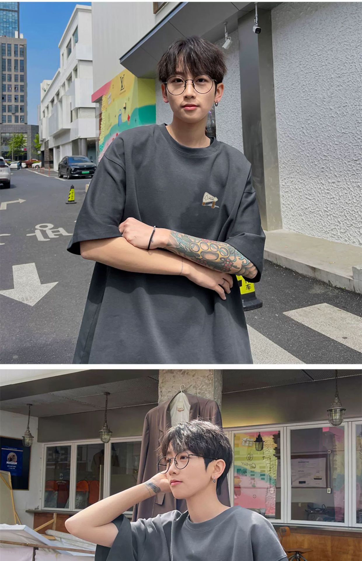 180g 무거운 짧은 소매 티셔츠 남자의 여름 패션 브랜드 반 소매 느슨한 크루 넥 티셔츠 캐주얼 탑스토어 가기