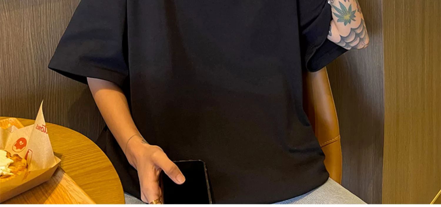 180g 무거운 짧은 소매 티셔츠 남자의 여름 패션 브랜드 반 소매 느슨한 크루 넥 티셔츠 캐주얼 탑