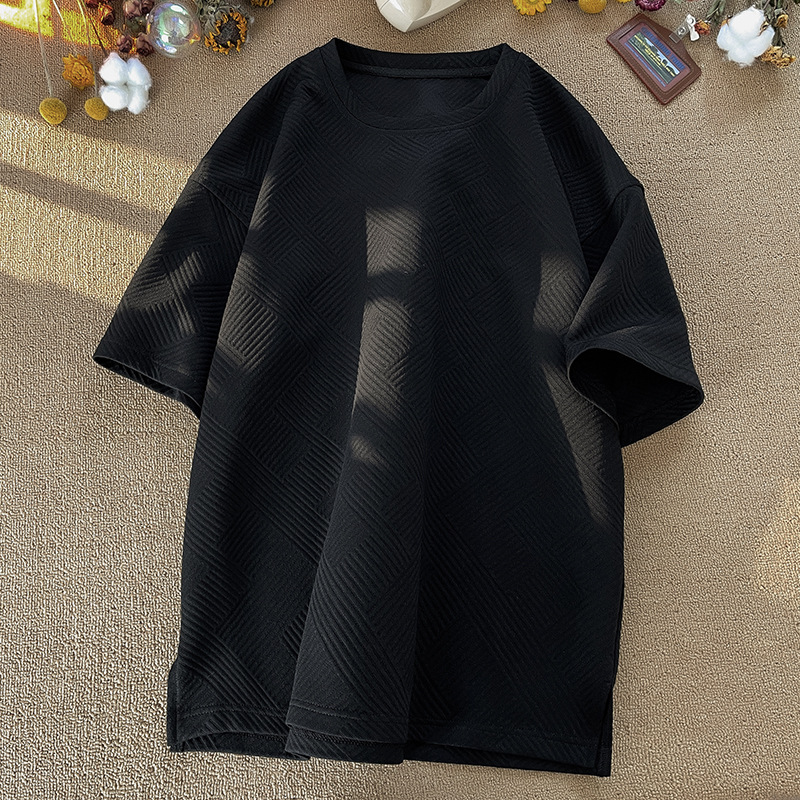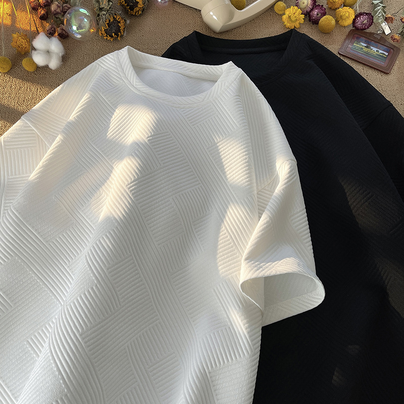 자카드 반팔 티셔츠 남성 여름 패션 브랜드 일본 스타일 느슨한 플러스 사이즈 뚱뚱한 남자의 여름 아이스 실크 옷 5 반 소매
