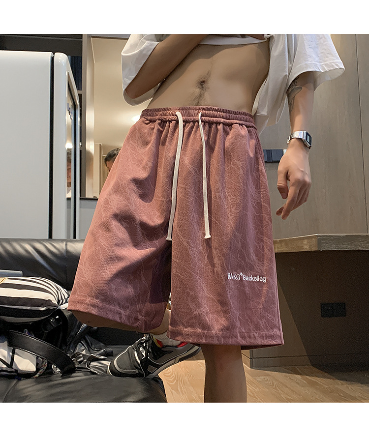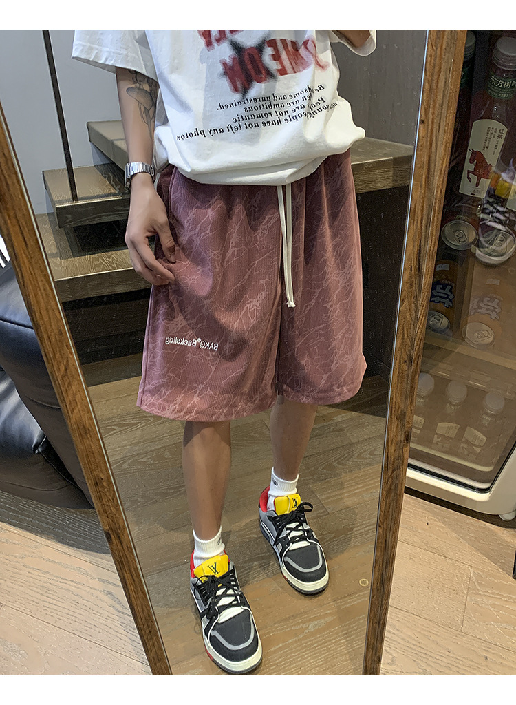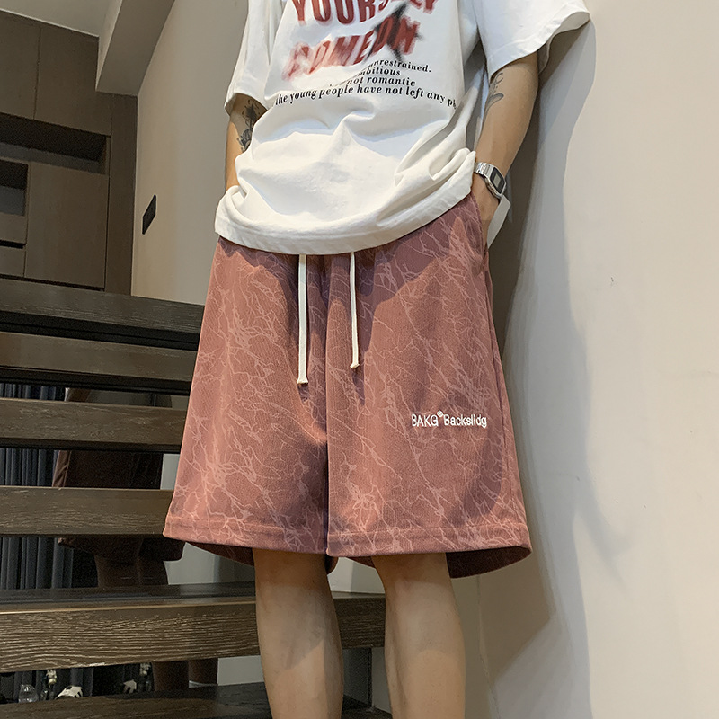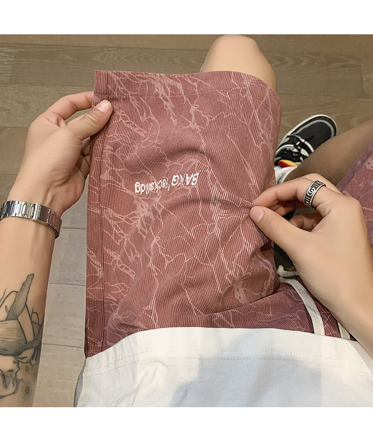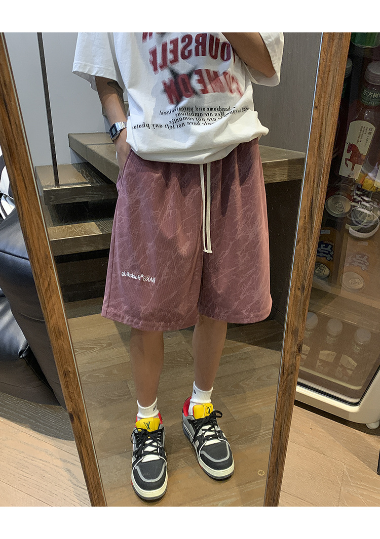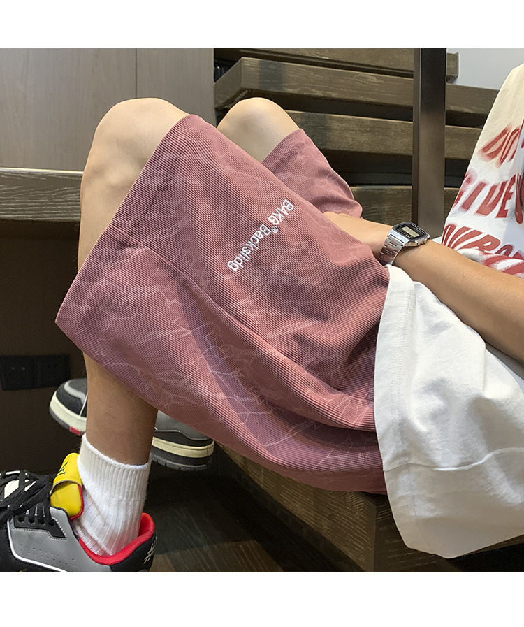 핑크 무거운 반바지 남자 여름 얇은 느슨한 캐주얼 스포츠 바지 유행 브랜드 미국 편지 자수 바지스토어 가기