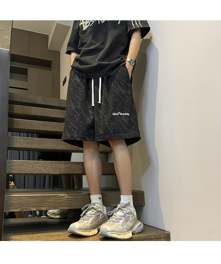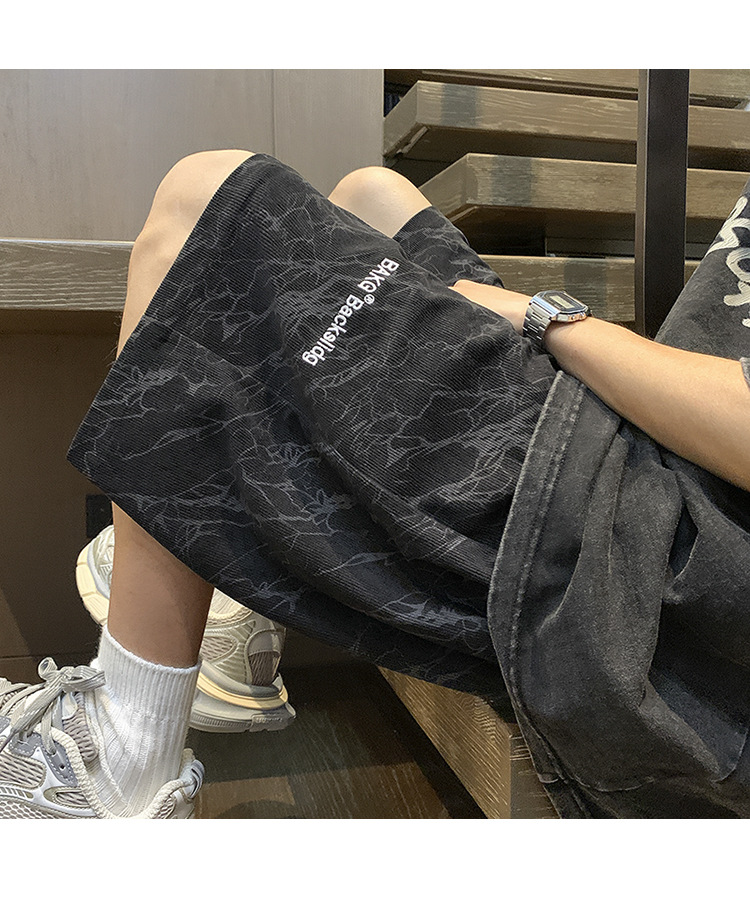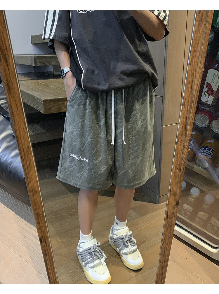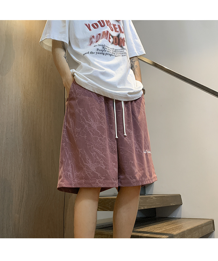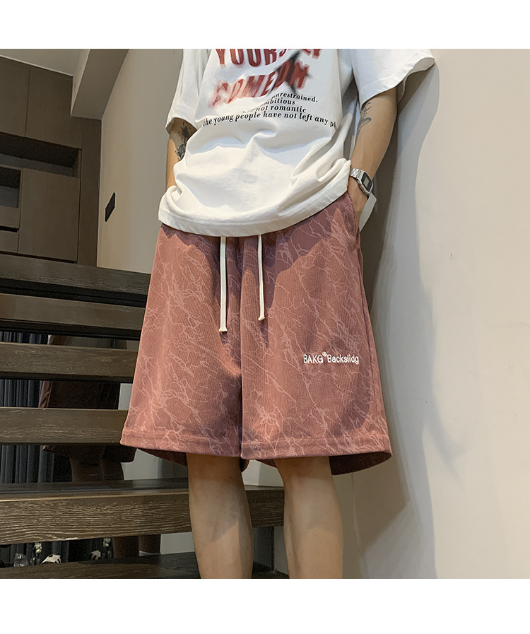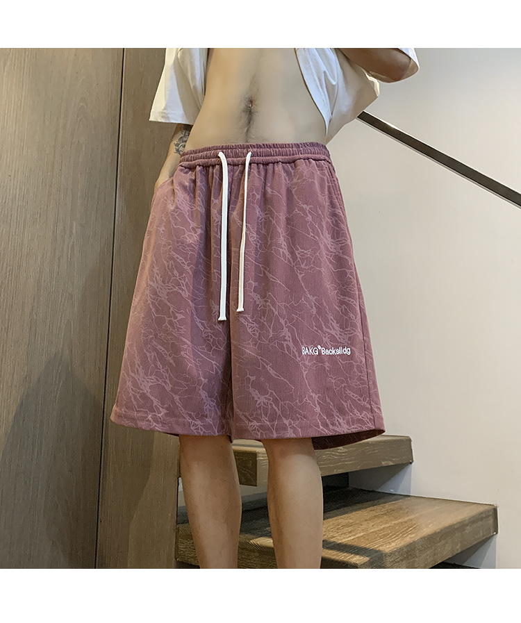핑크 무거운 반바지 남자 여름 얇은 느슨한 캐주얼 스포츠 바지 유행 브랜드 미국 편지 자수 바지스토어 가기
