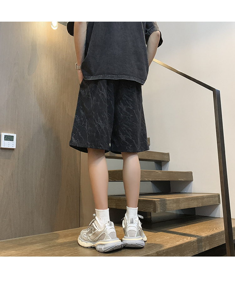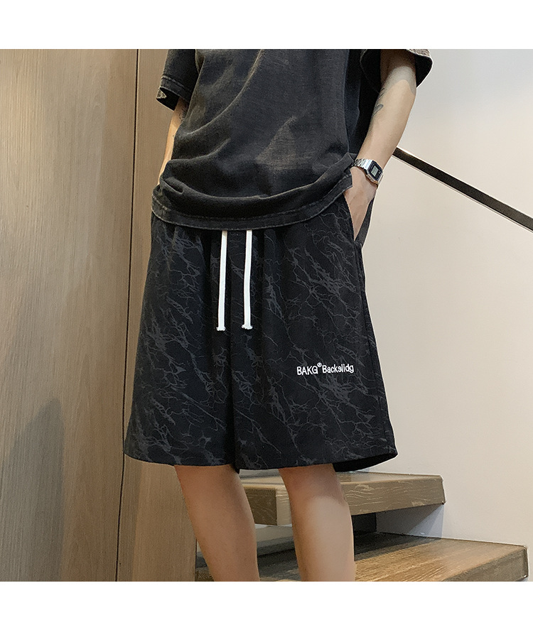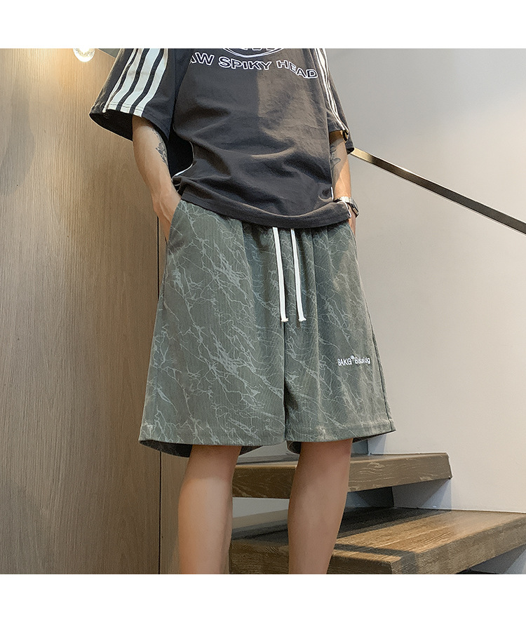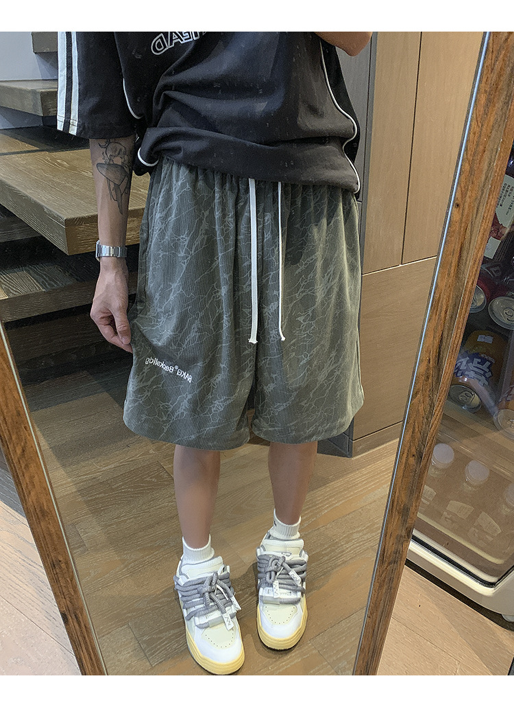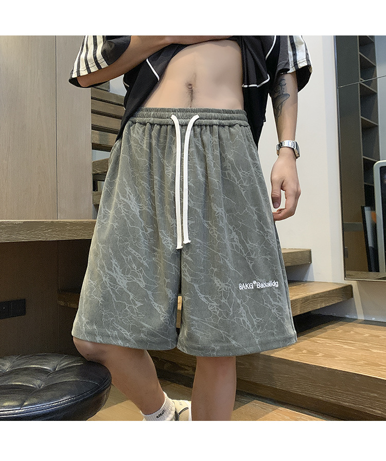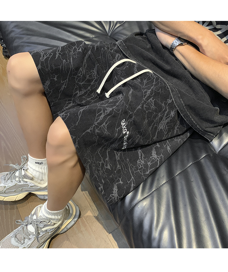 핑크 무거운 반바지 남자 여름 얇은 느슨한 캐주얼 스포츠 바지 유행 브랜드 미국 편지 자수 바지스토어 가기