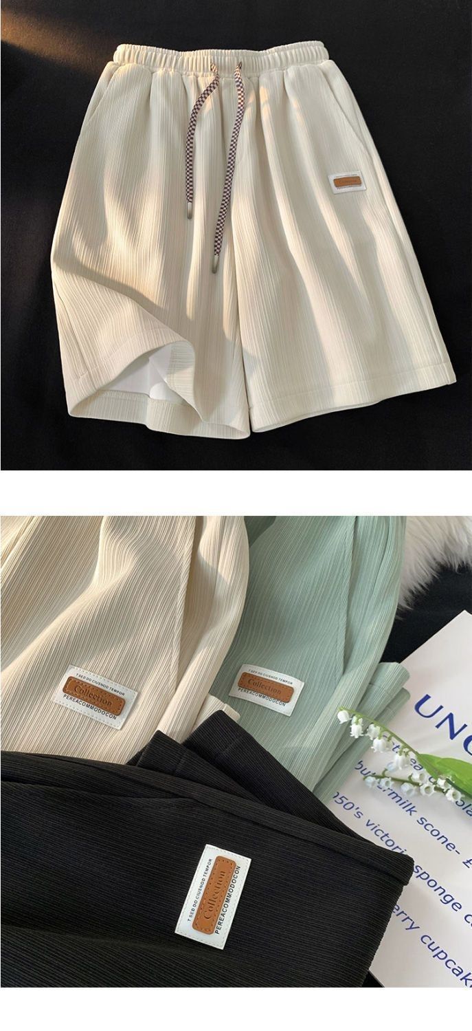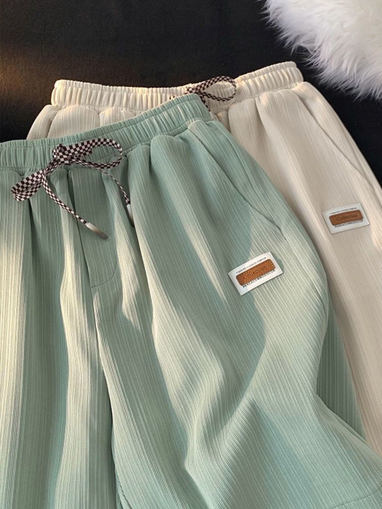 텍스처 민트 그린 반바지 남자 여름 얇은 쿨 아이스 실크 바지 캐주얼 루즈 홈 파자마 바지