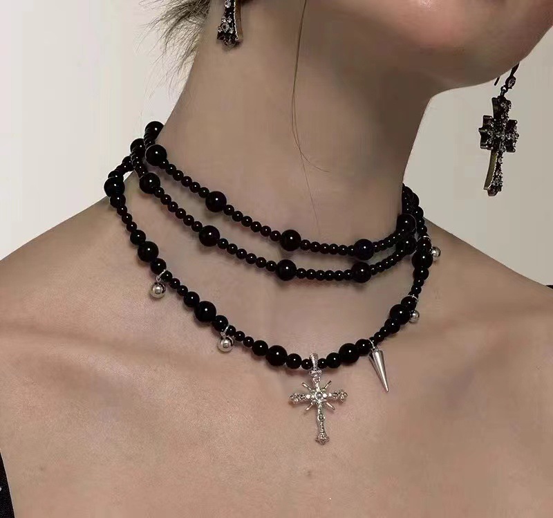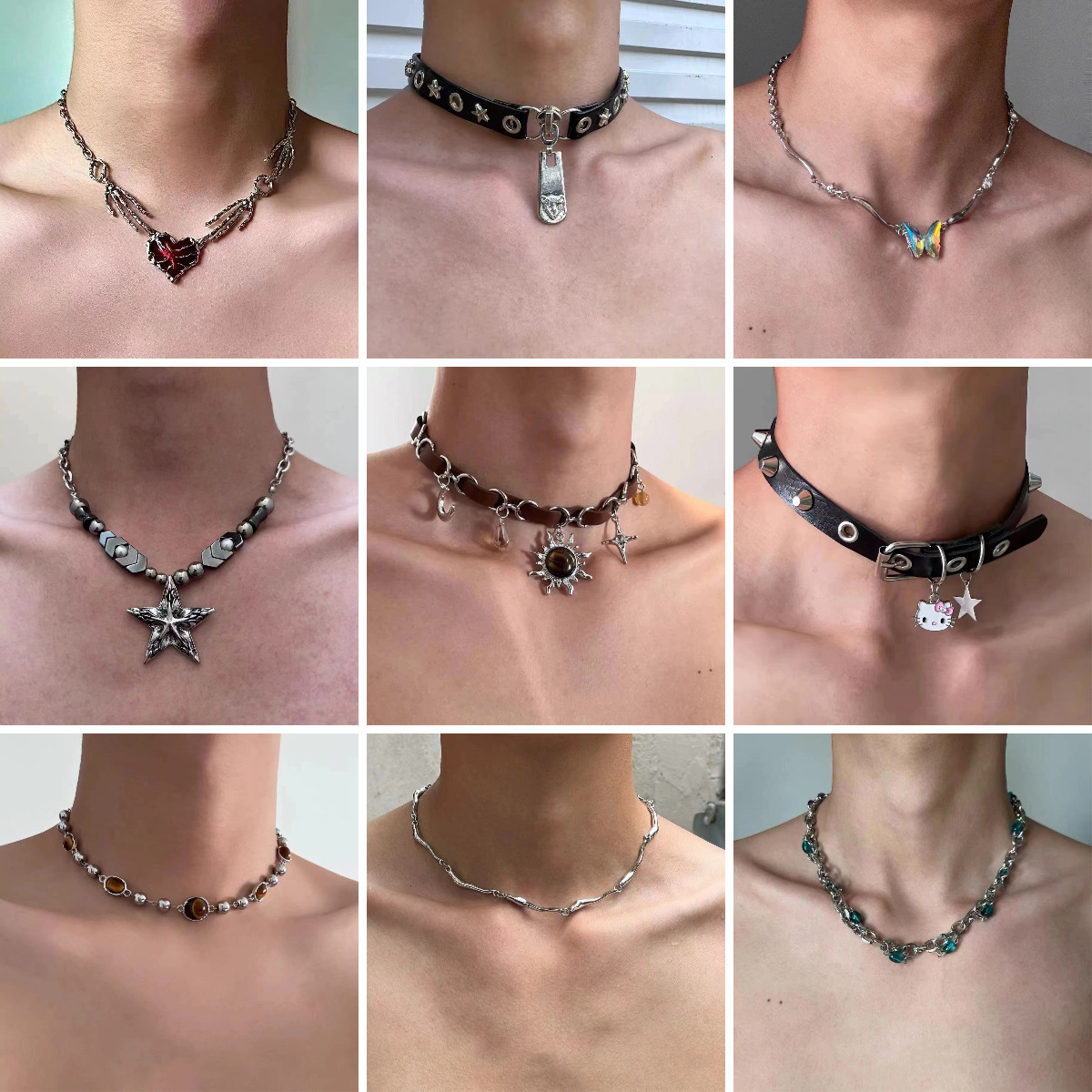 하위 문화 펑크 칼라 높은 수준의 쇄골 체인 중공업 다층 다크 초커 목걸이 가죽 목걸이