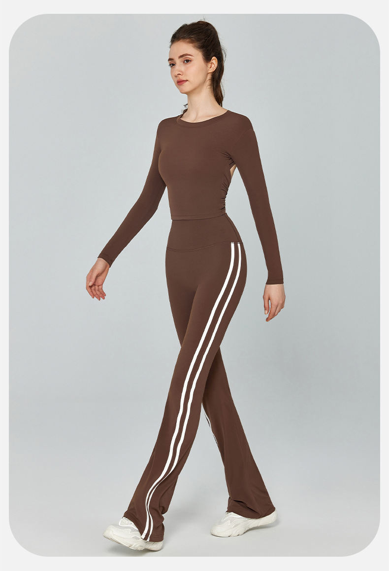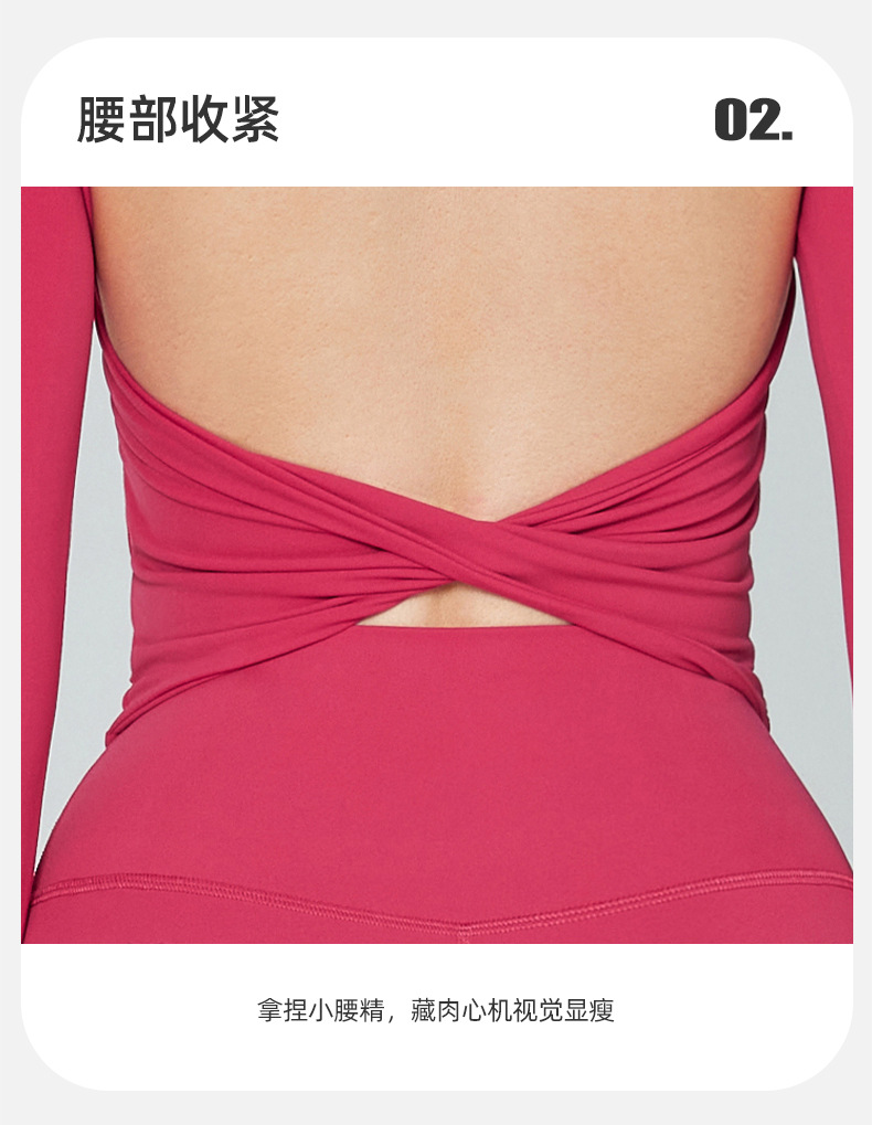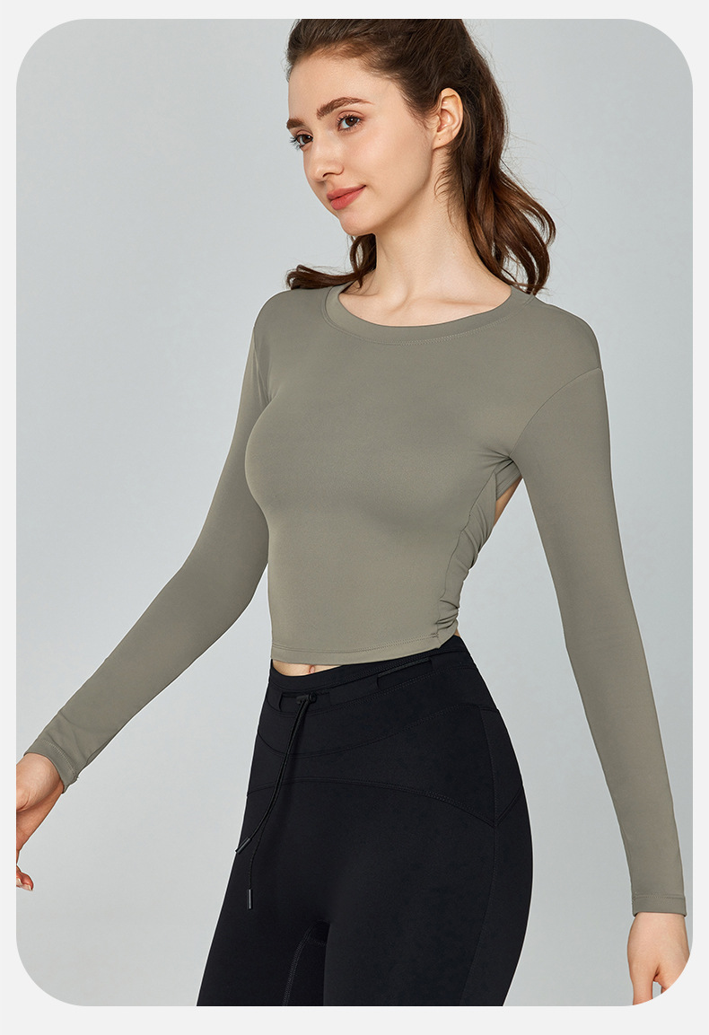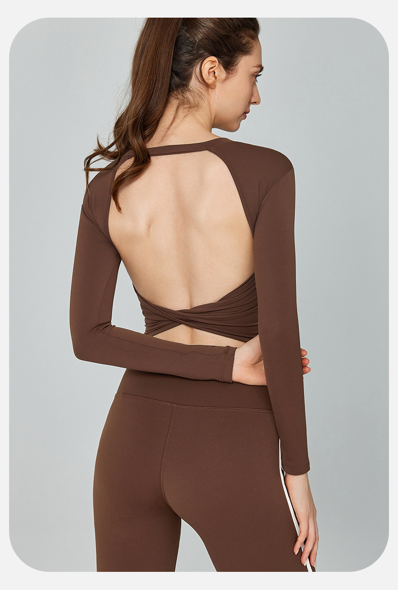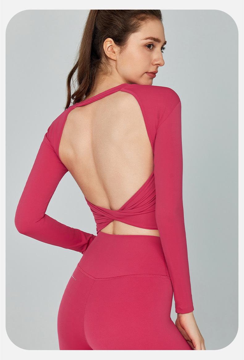 유럽과 미국의 섹시한 백리스 요가 세트 긴 소매 여성 스포츠 탑 가슴 패드 복부 슬리밍 피트니스 긴 소매 훈련 세트