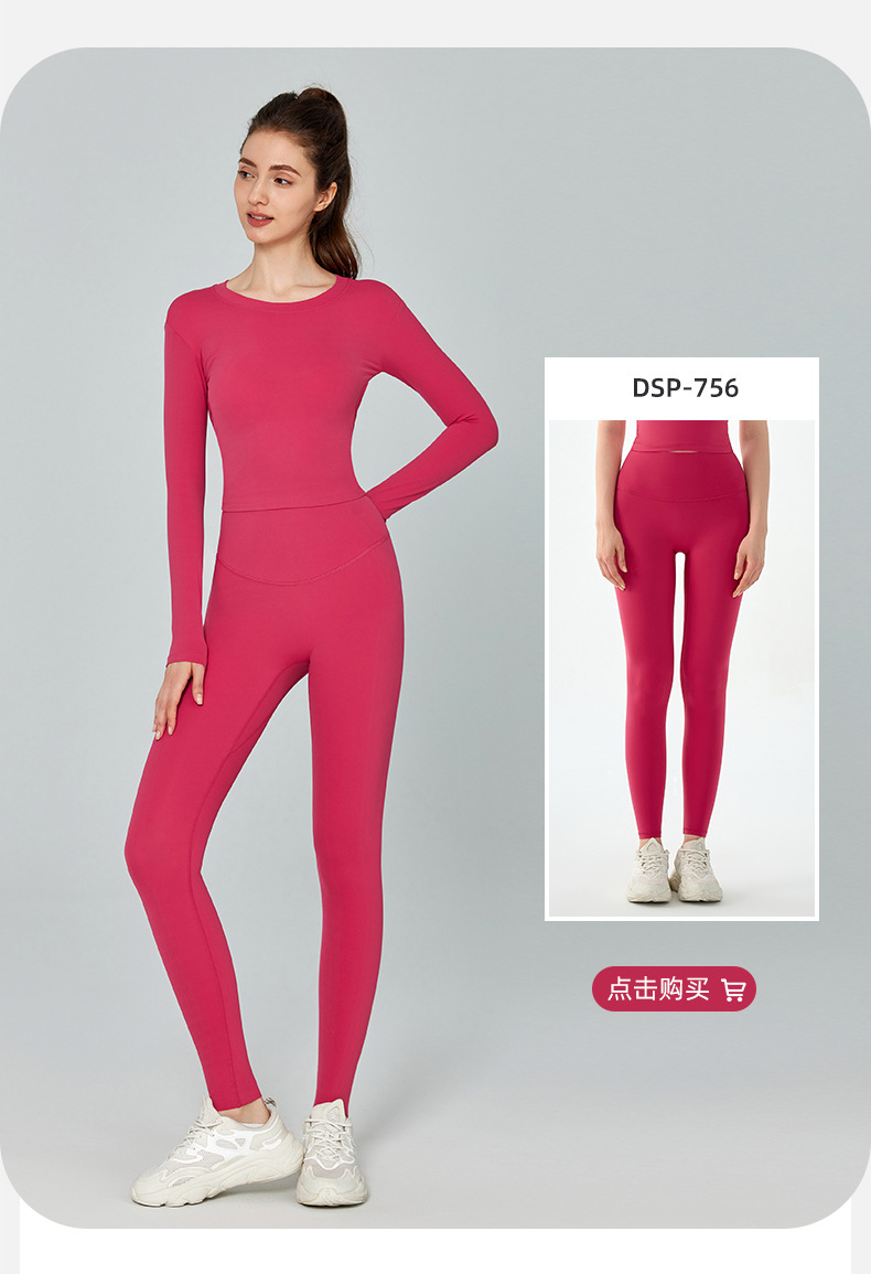 유럽과 미국의 섹시한 백리스 요가 세트 긴 소매 여성 스포츠 탑 가슴 패드 복부 슬리밍 피트니스 긴 소매 훈련 세트스토어 가기