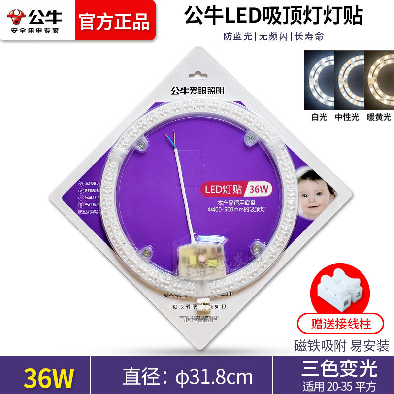정품 황소 천장 램프 심지 라운드 심지 램프 페이스트 교체 LED 램프 패널 거실 침실 LED 램프 패널 램프 소스