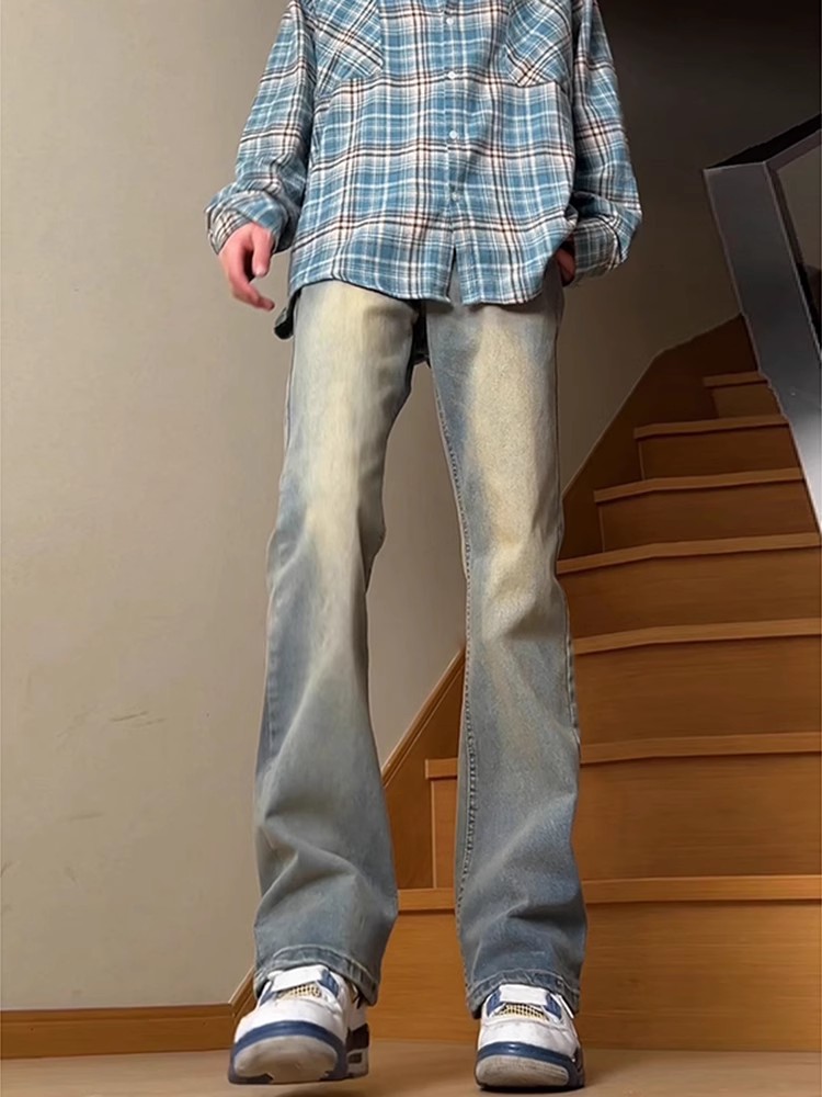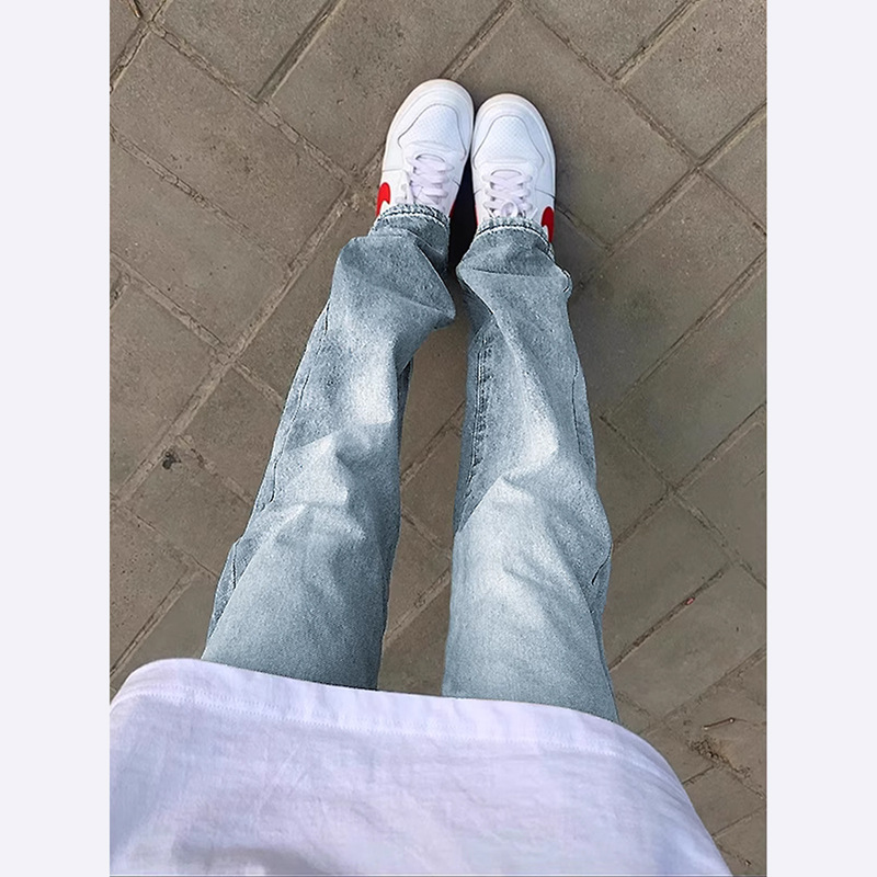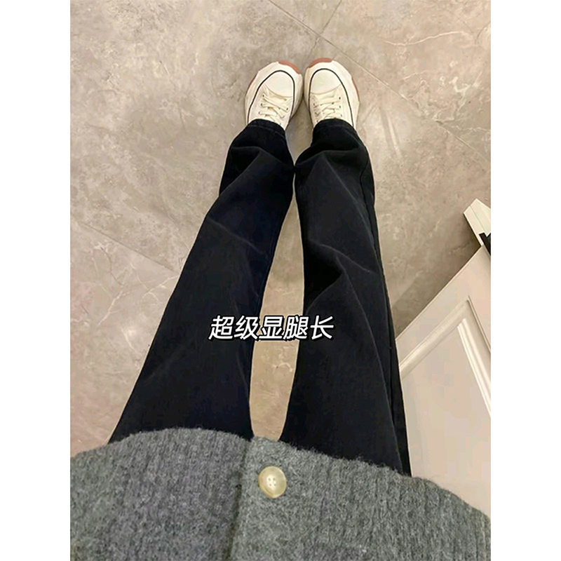 남학생과 여학생을위한 블랙 올 매치 청바지 미국식 시미 타르 팬츠 레그 롱 슬림 핏 좁은 스트레이트 팬츠 쇼스토어 가기