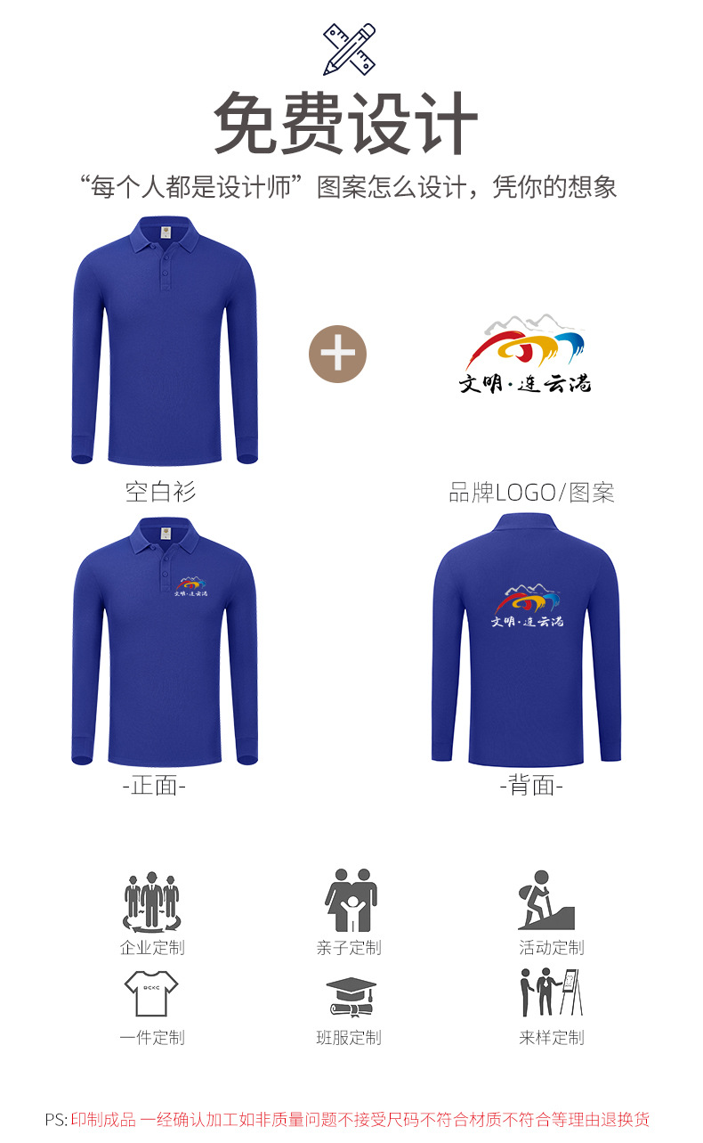폴로 셔츠 긴팔 작업복 맞춤 로고 인쇄 라펠 순면 남녀 공용 작업복 단체 광고 셔츠 다용도 트렌디 브랜드