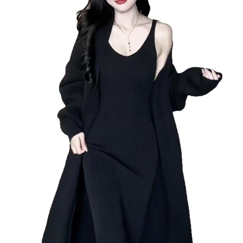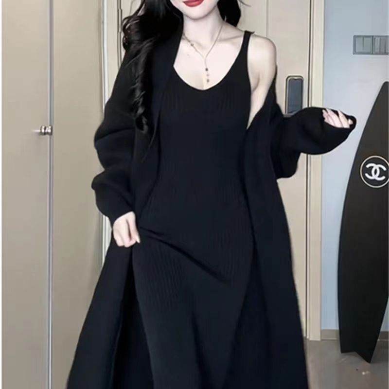 느슨한 서리 녹색 그림 여신 팬 부드러운 기질 니트 코트 원피스 스웨터 긴 치마 투피스 게으른스토어 가기