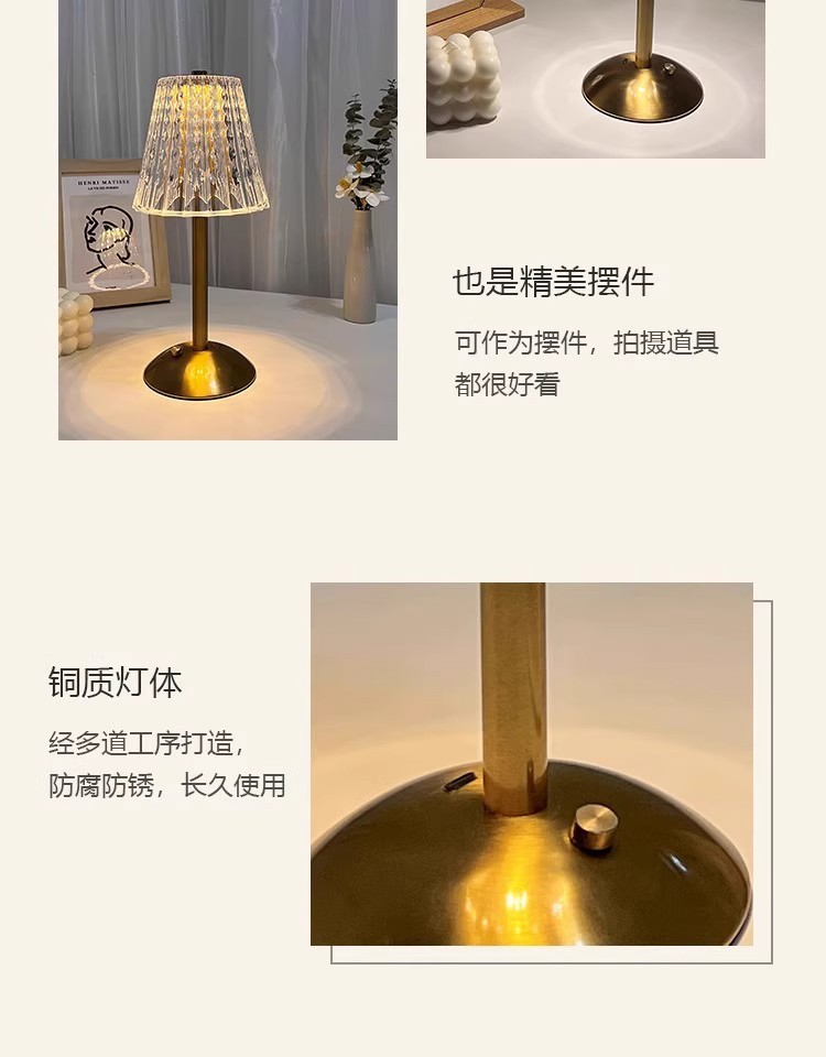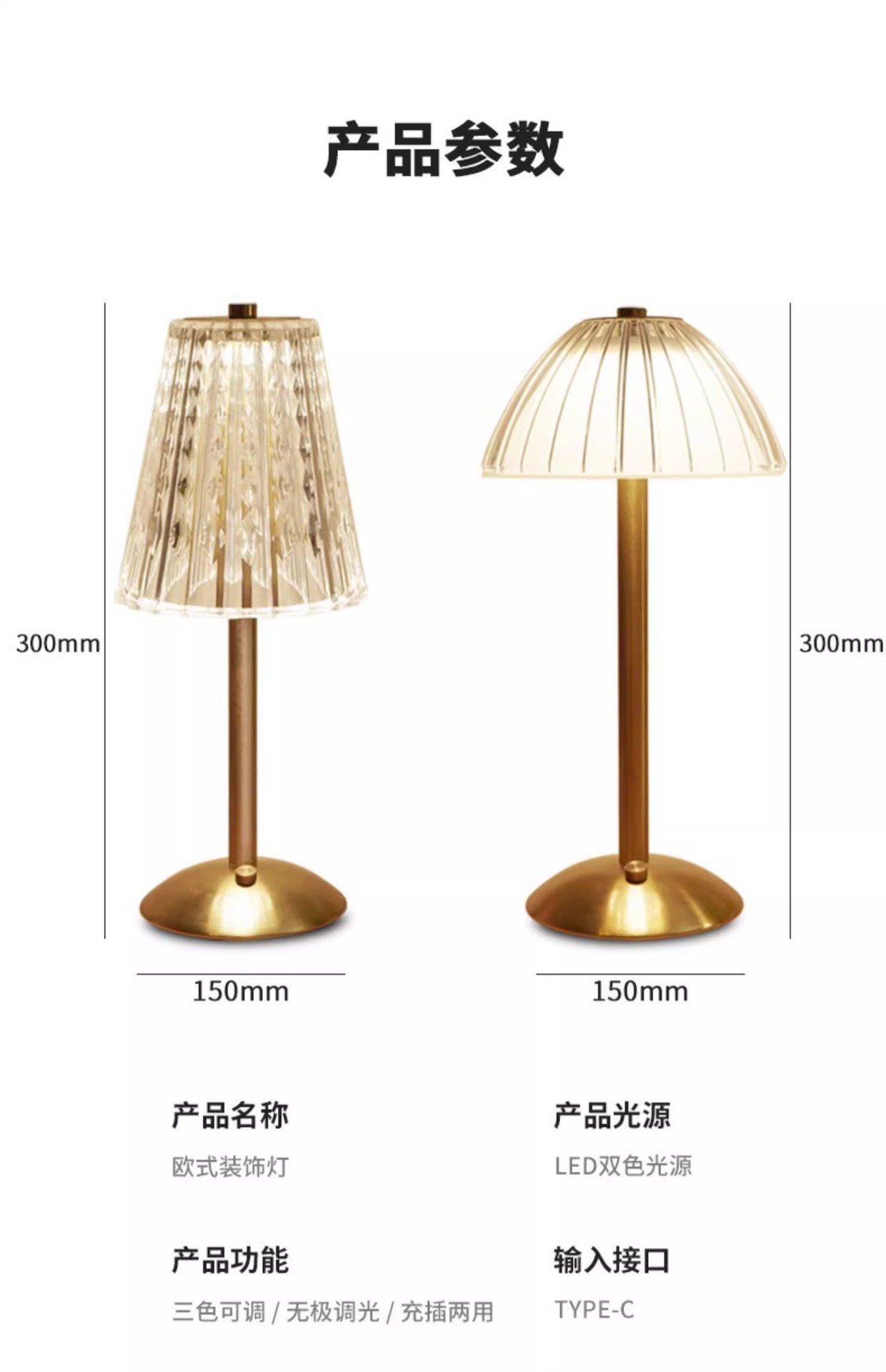 국경을 넘는 금속 테이블 램프 침대 옆 충전식 야간 조명 침실 장식 분위기 조명 미국식 라이트 럭셔리 바 테이블 램프 LED