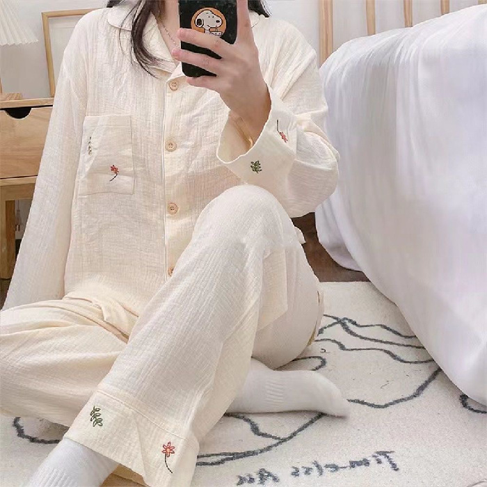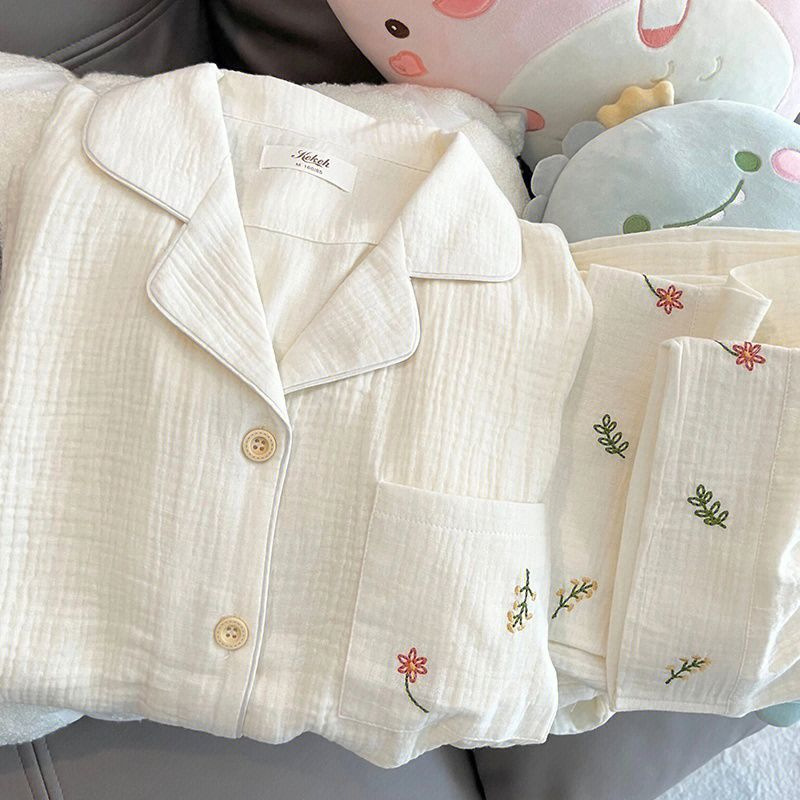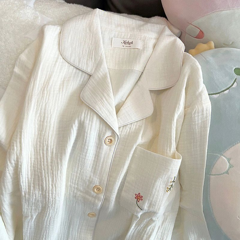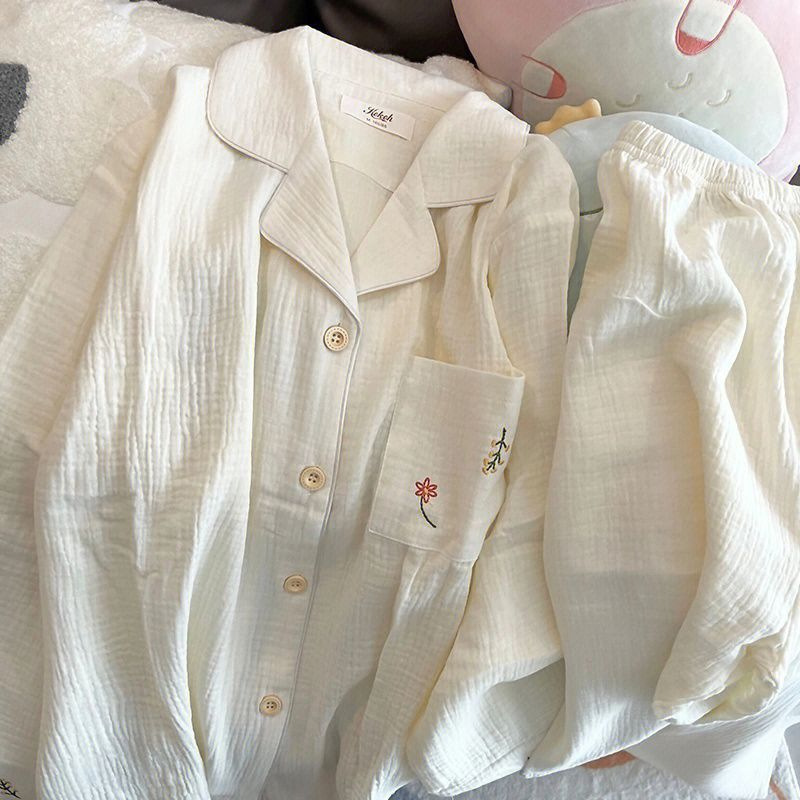 새로운 Ins 스타일 달콤한 인쇄 긴 소매 잠옷 여성 인터넷 연예인 가을 2024 새로운 바지 홈 세트