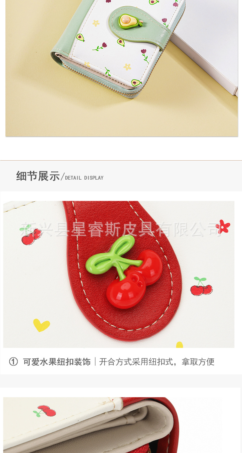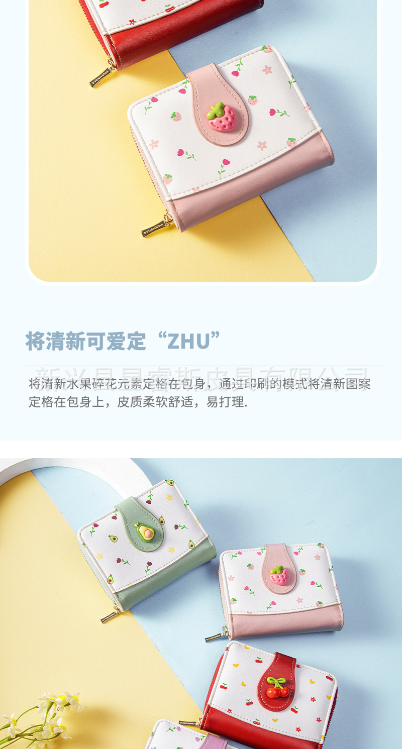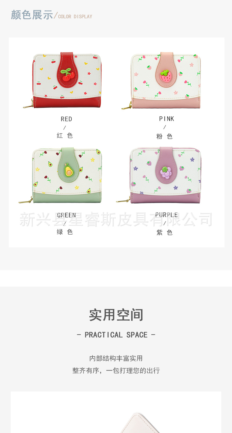 새로운 스타일의 크로스보더 상큼한 과일 디자인 여성 지갑, 은행카드 및 신용카드 수납 가방, 지퍼형 학생용 동전 지갑스토어 가기