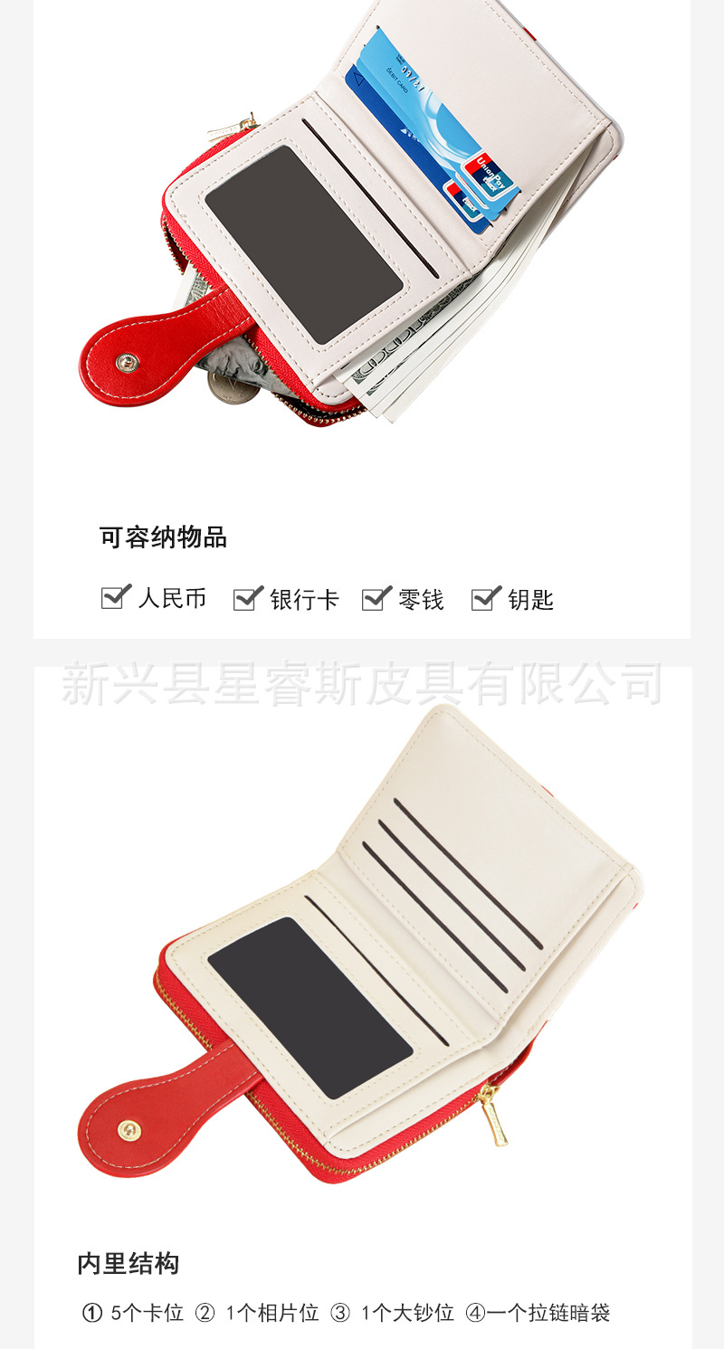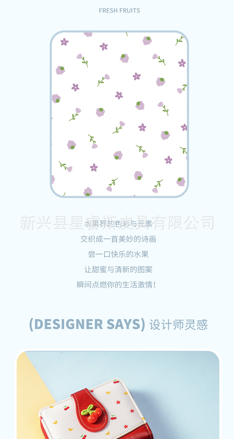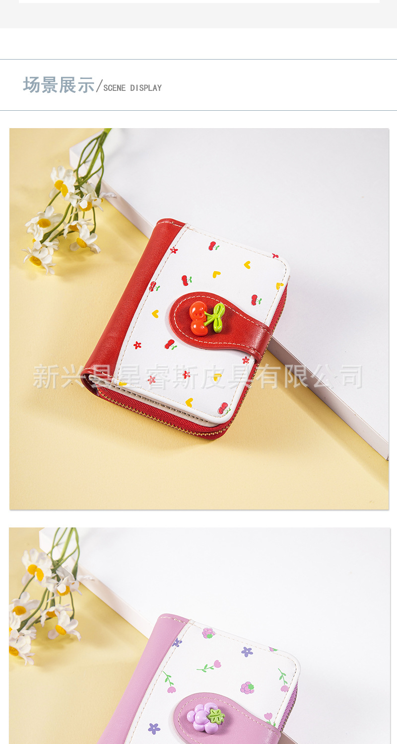 새로운 스타일의 크로스보더 상큼한 과일 디자인 여성 지갑, 은행카드 및 신용카드 수납 가방, 지퍼형 학생용 동전 지갑스토어 가기