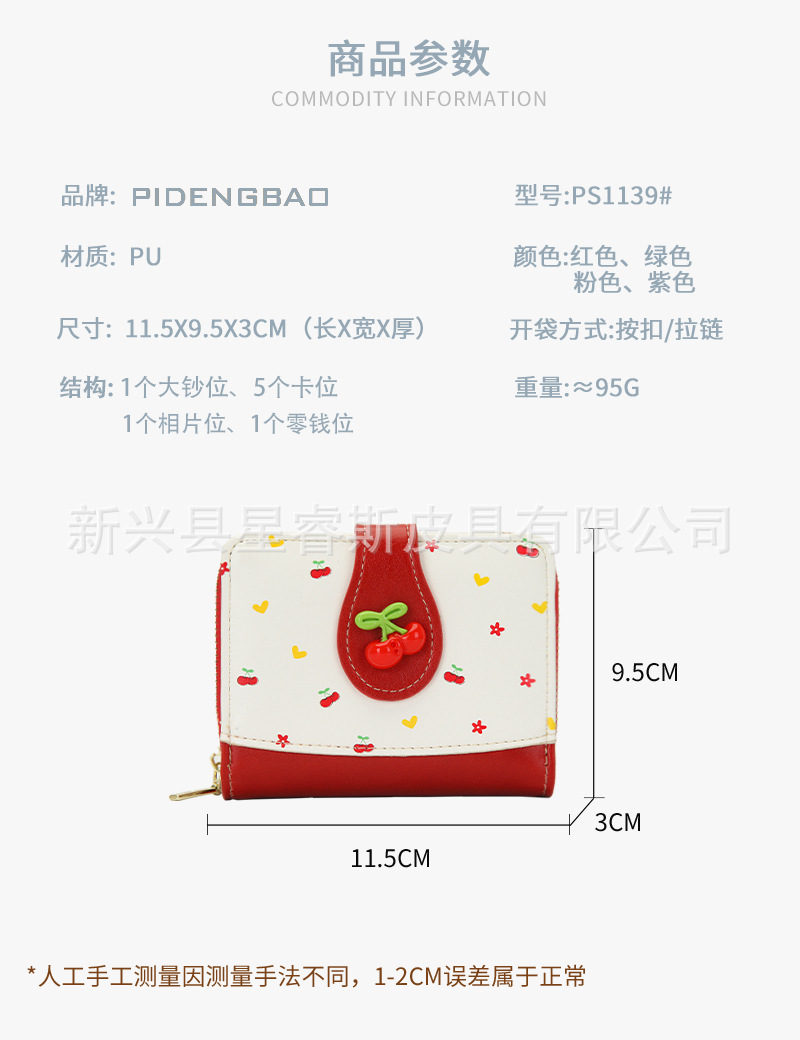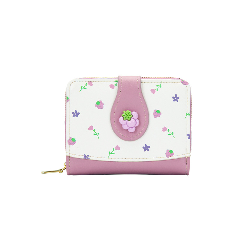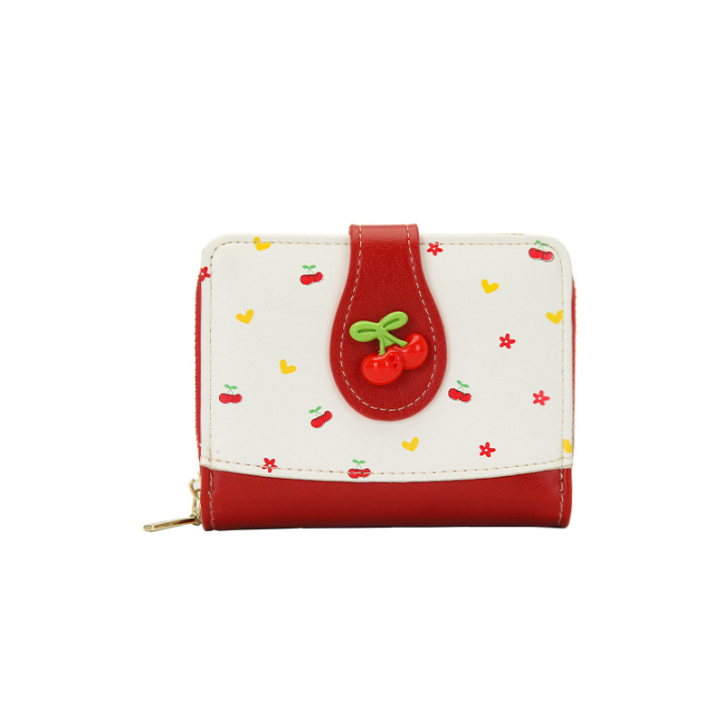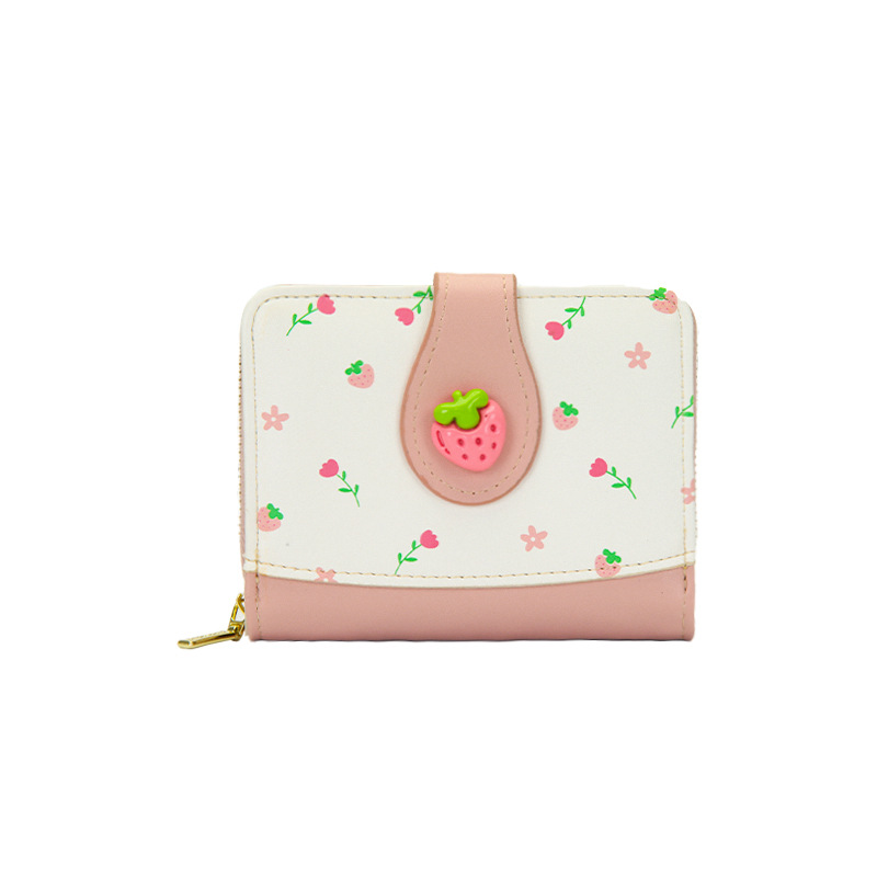 새로운 스타일의 크로스보더 상큼한 과일 디자인 여성 지갑, 은행카드 및 신용카드 수납 가방, 지퍼형 학생용 동전 지갑