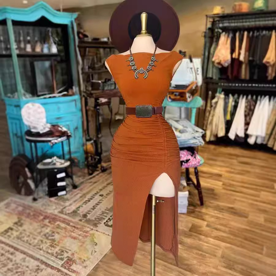 유럽과 미국의 2024 국경 여성 니트 스플릿 슬림 핏 타이트 원피스스토어 가기