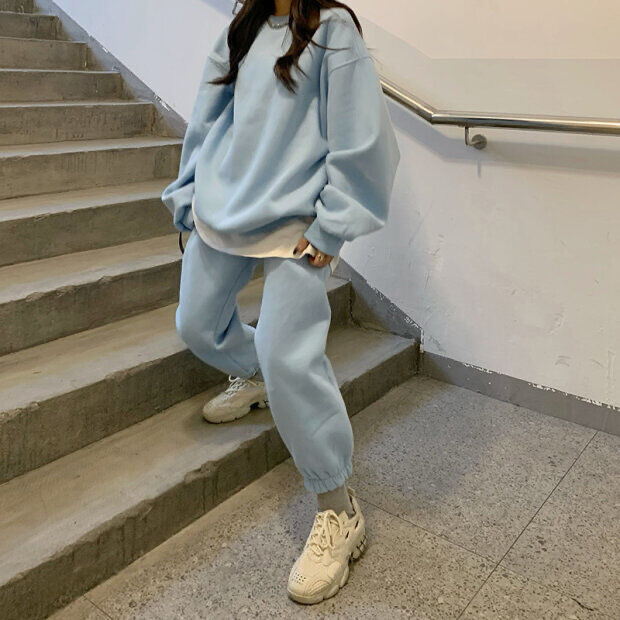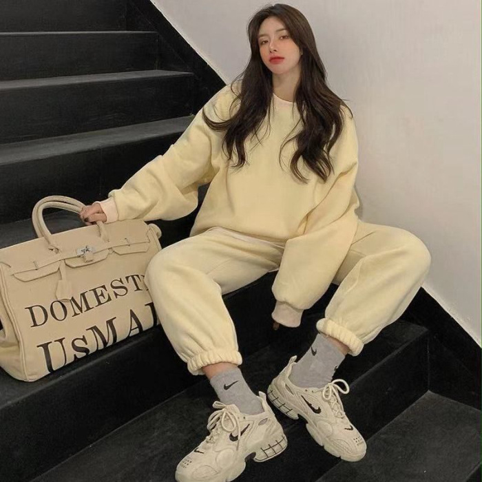 순 붉은 폭발 캐주얼 패션 스포츠 세트 2024 가을 새로운 느슨한 긴 소매 서양식 스웨터 바지 투피스 세트