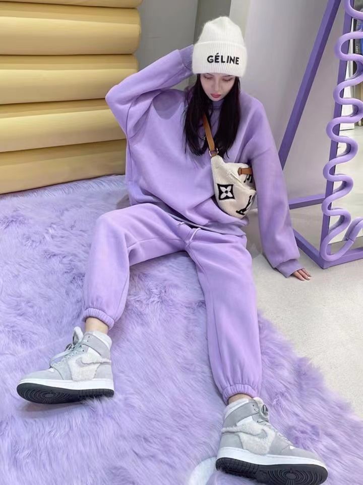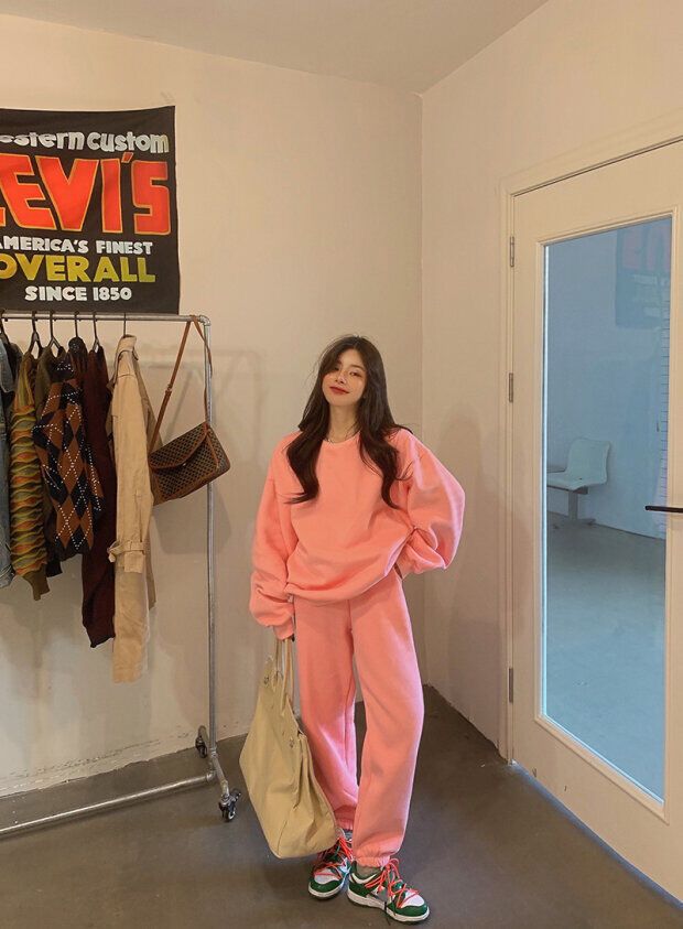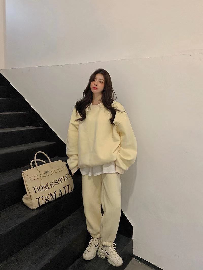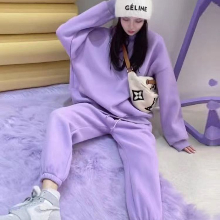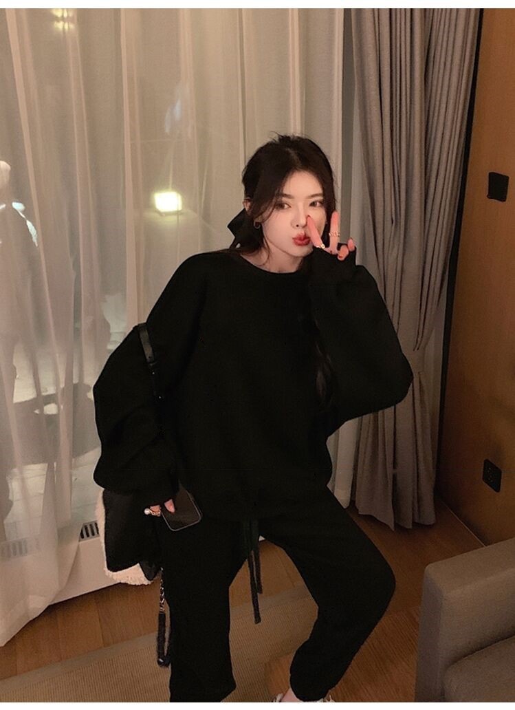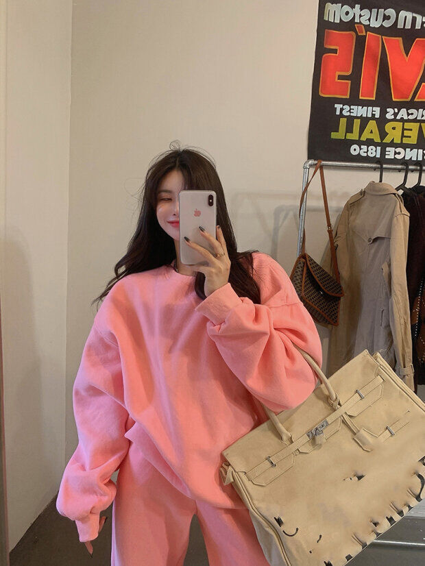 순 붉은 폭발 캐주얼 패션 스포츠 세트 2024 가을 새로운 느슨한 긴 소매 서양식 스웨터 바지 투피스 세트스토어 가기