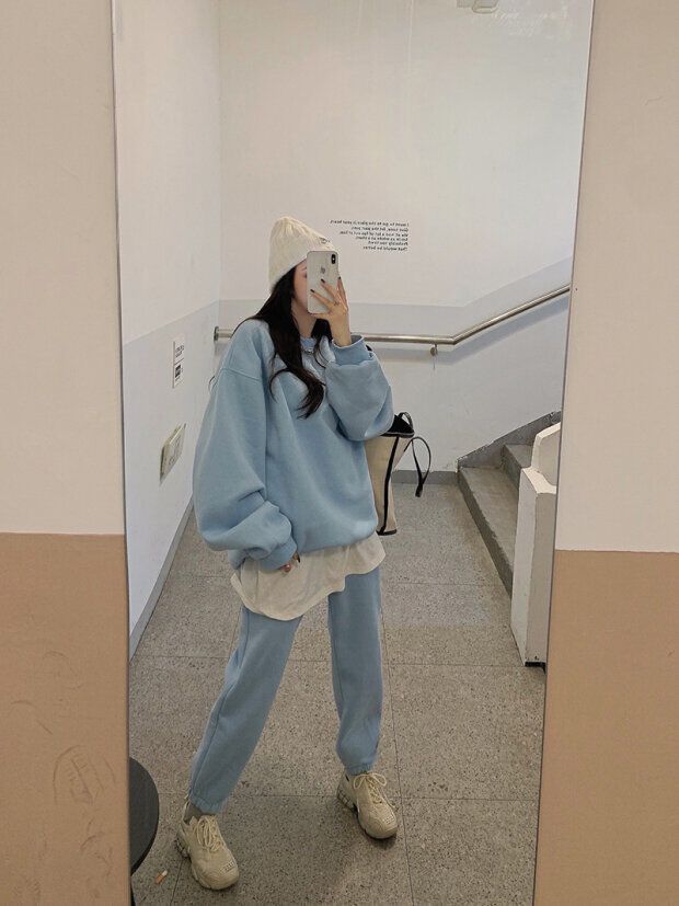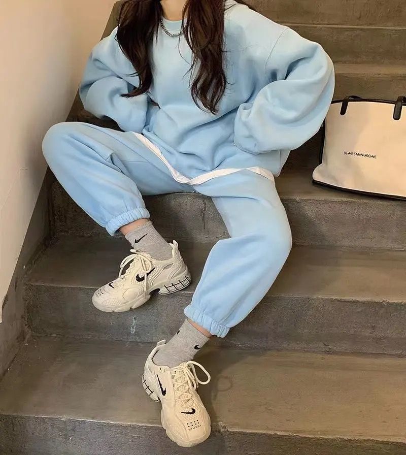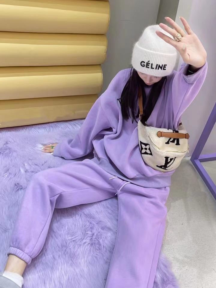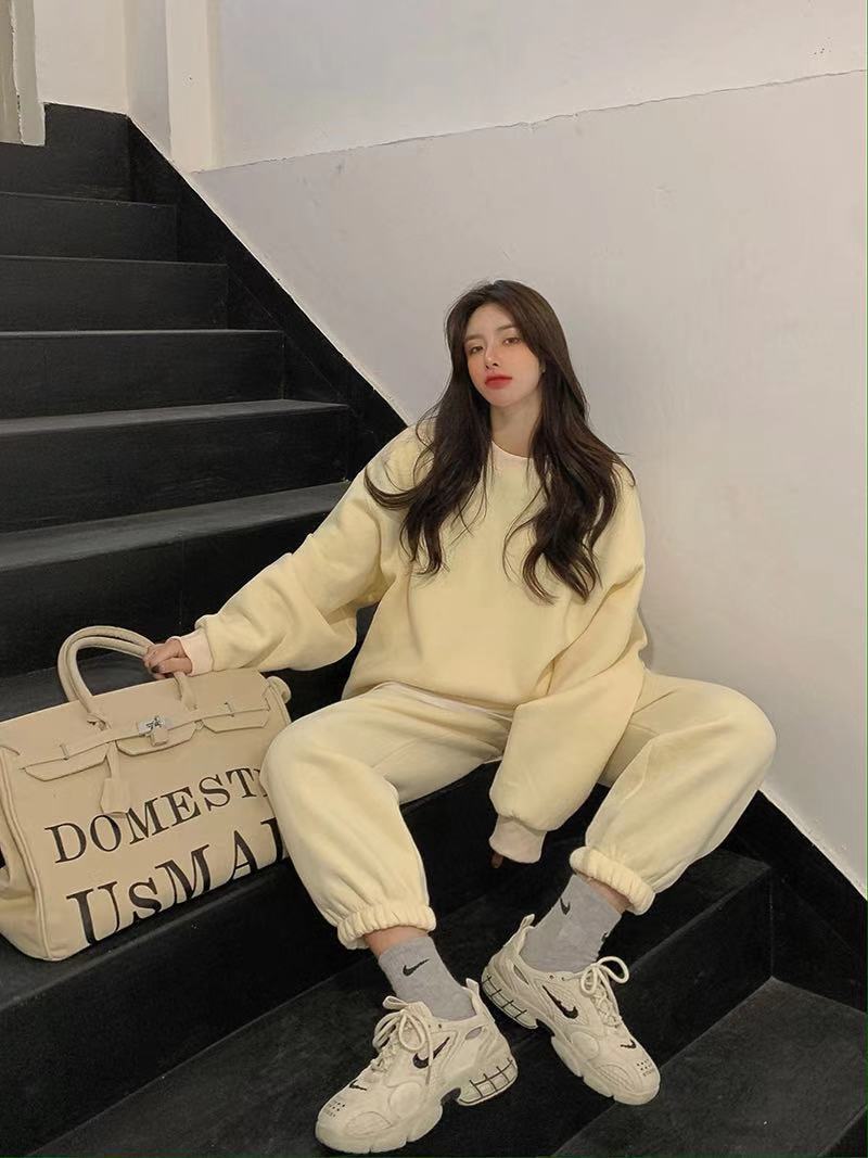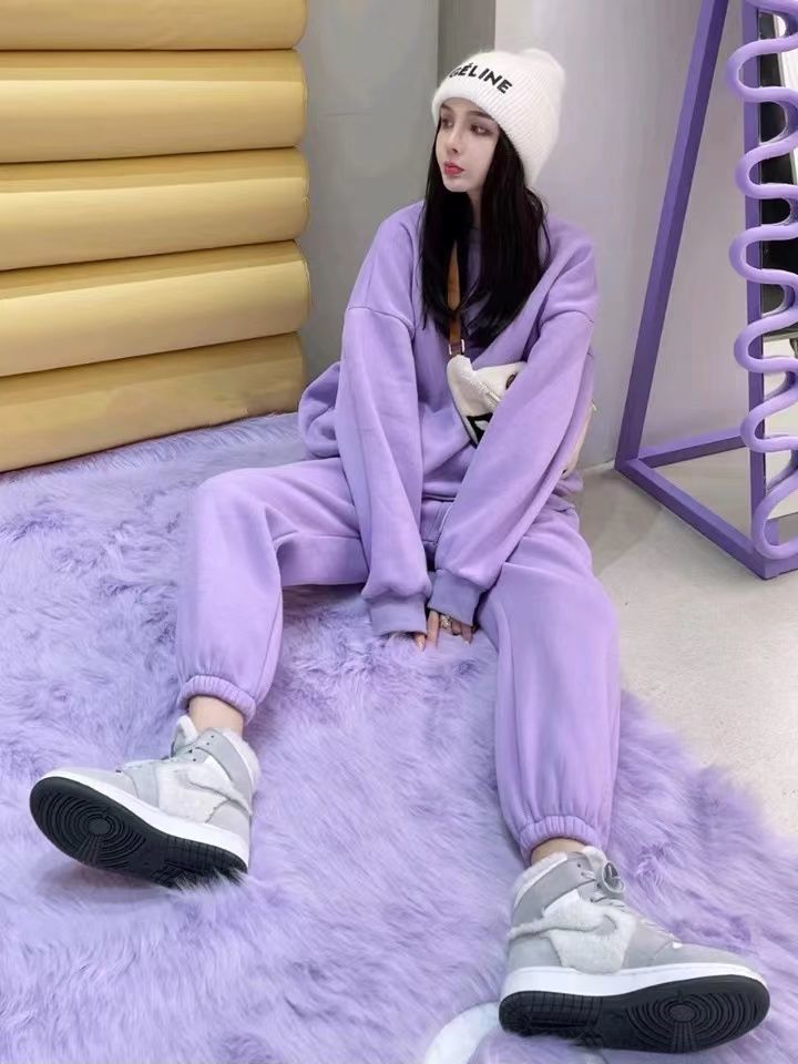 순 붉은 폭발 캐주얼 패션 스포츠 세트 2024 가을 새로운 느슨한 긴 소매 서양식 스웨터 바지 투피스 세트스토어 가기