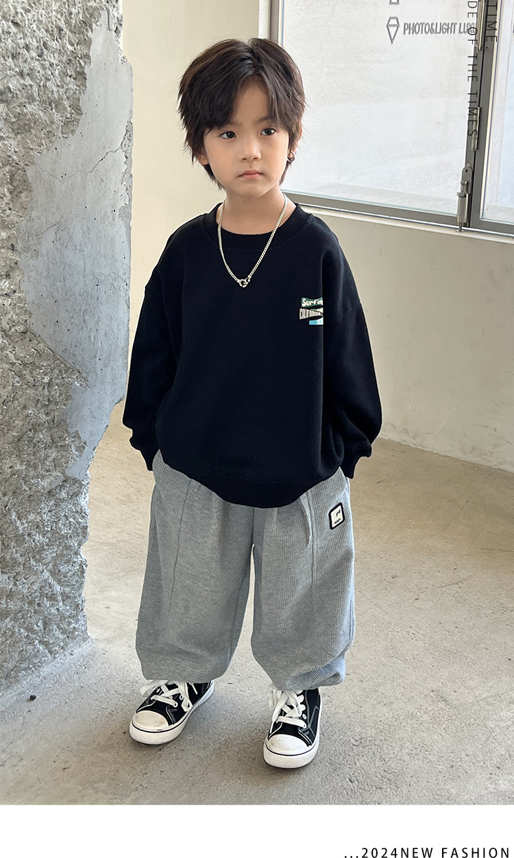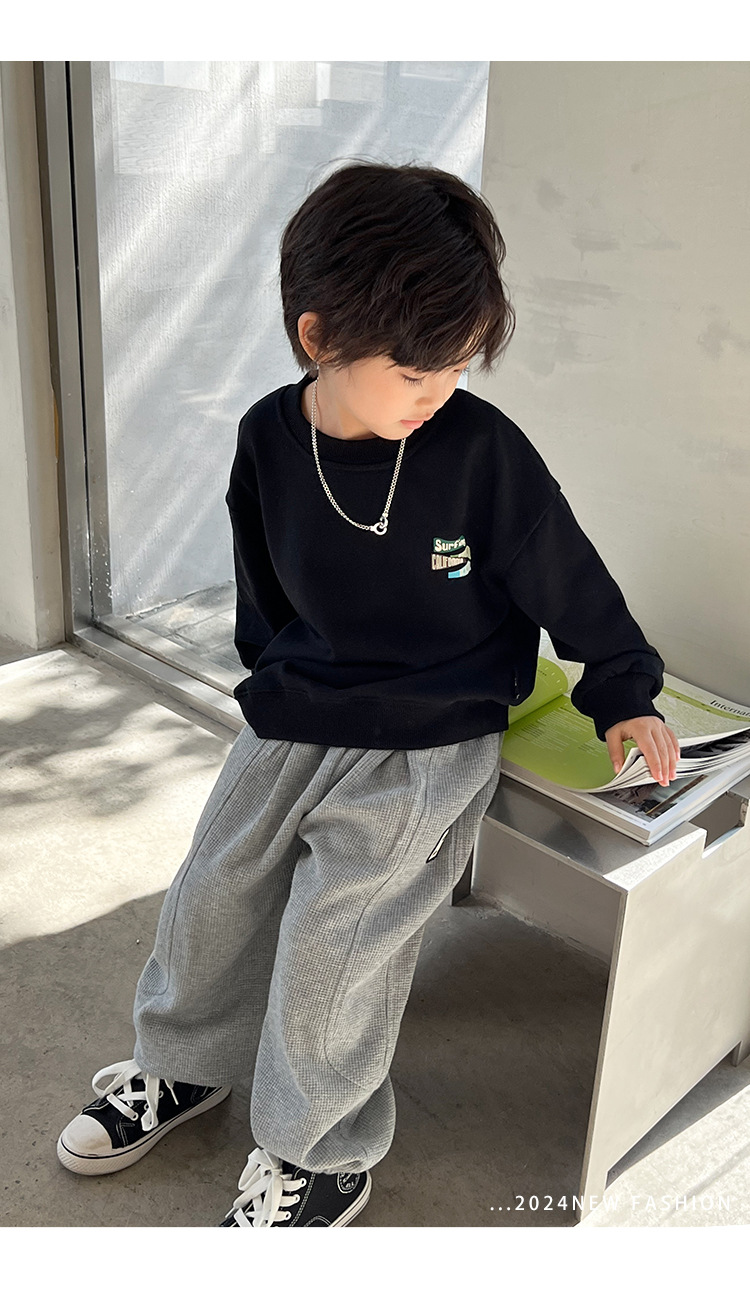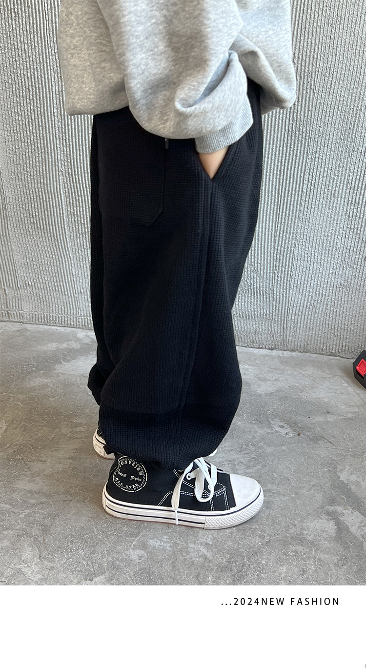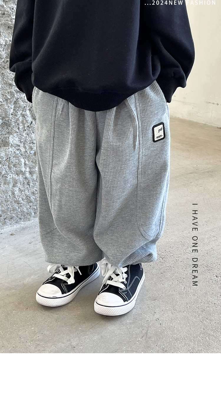 어린이 스포츠 바지 소년 바지 아기의 봄과 가을 캐주얼 바지 2024 가을 작은 소년을위한 새로운 니트 운동복스토어 가기
