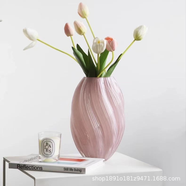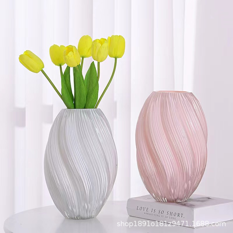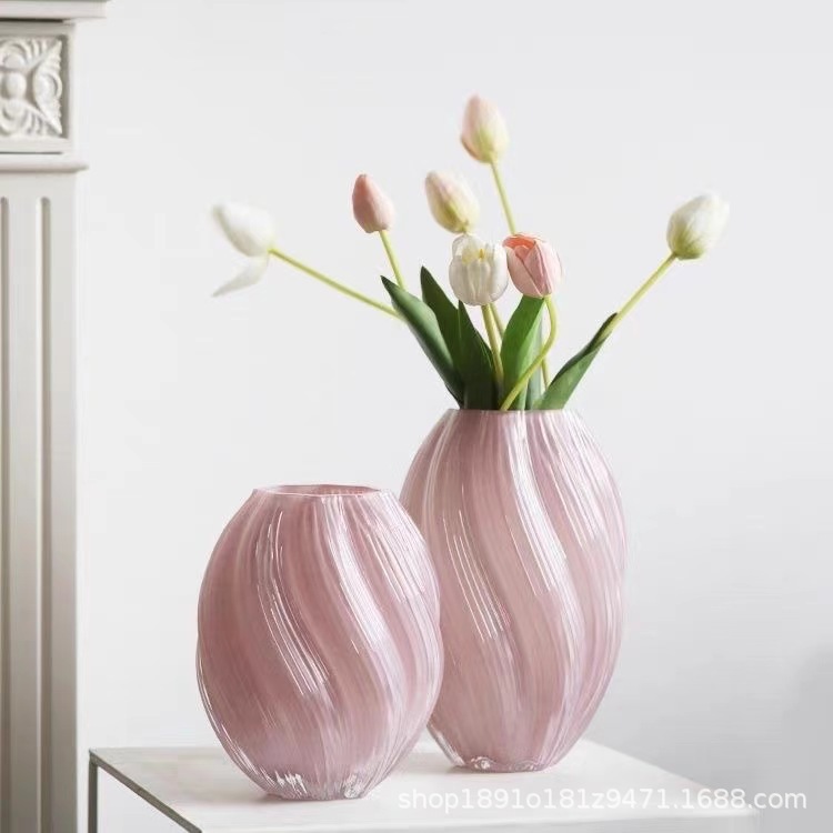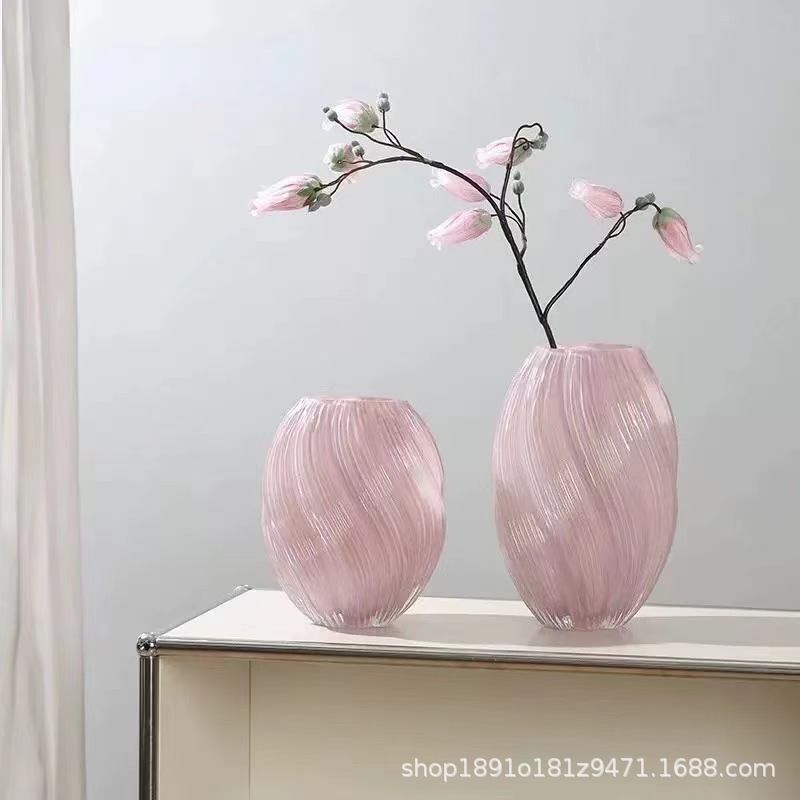 가벼운 고급 하이 엔드 센스 유리 꽃병 빛나는 장식품 Maltose 나선형 꽃 말린 꽃 꽃 꽃꽂이-물놀이 홈 액세서리스토어 가기