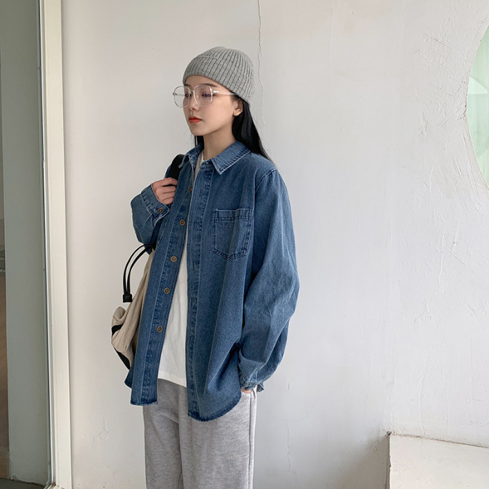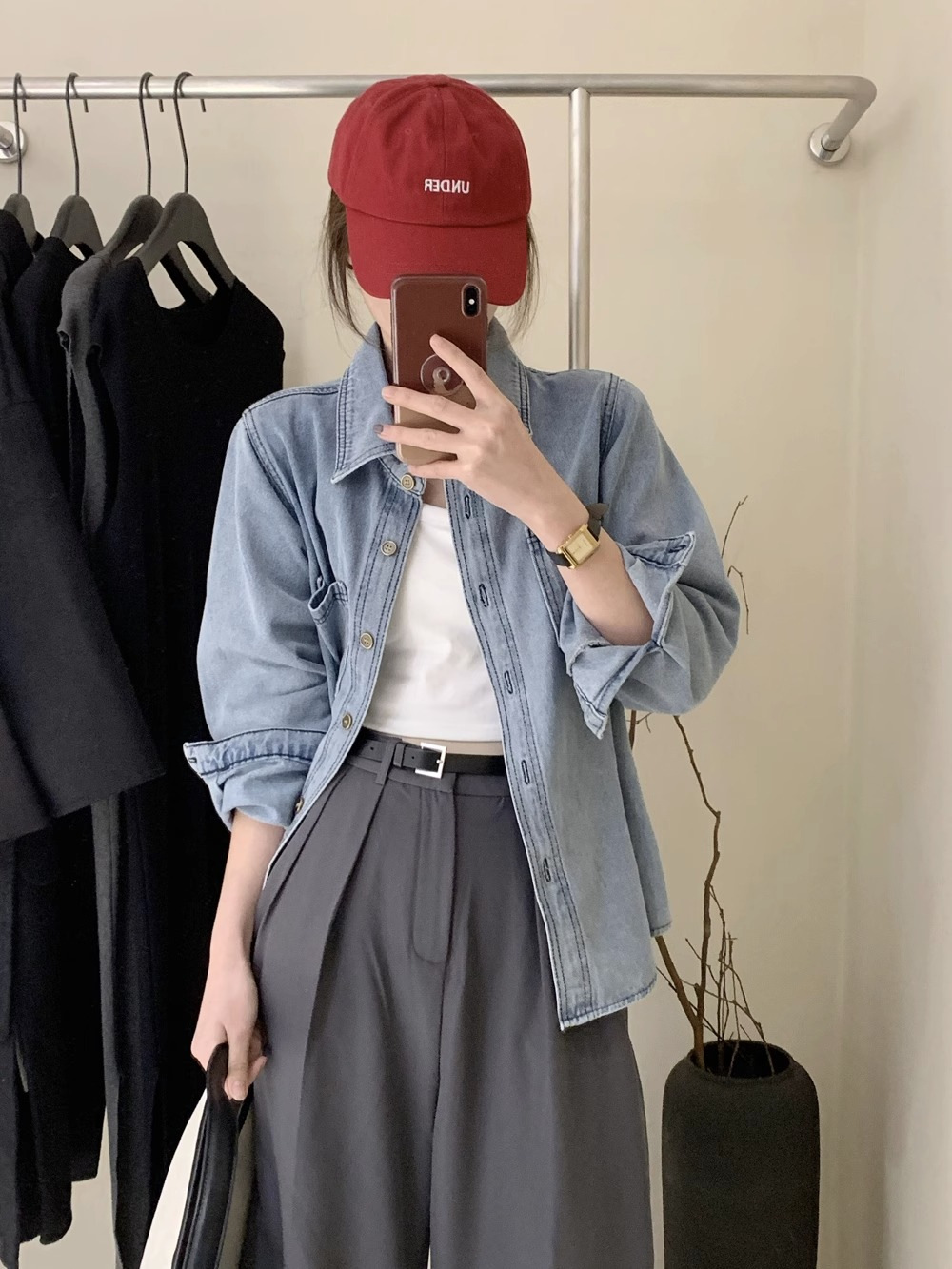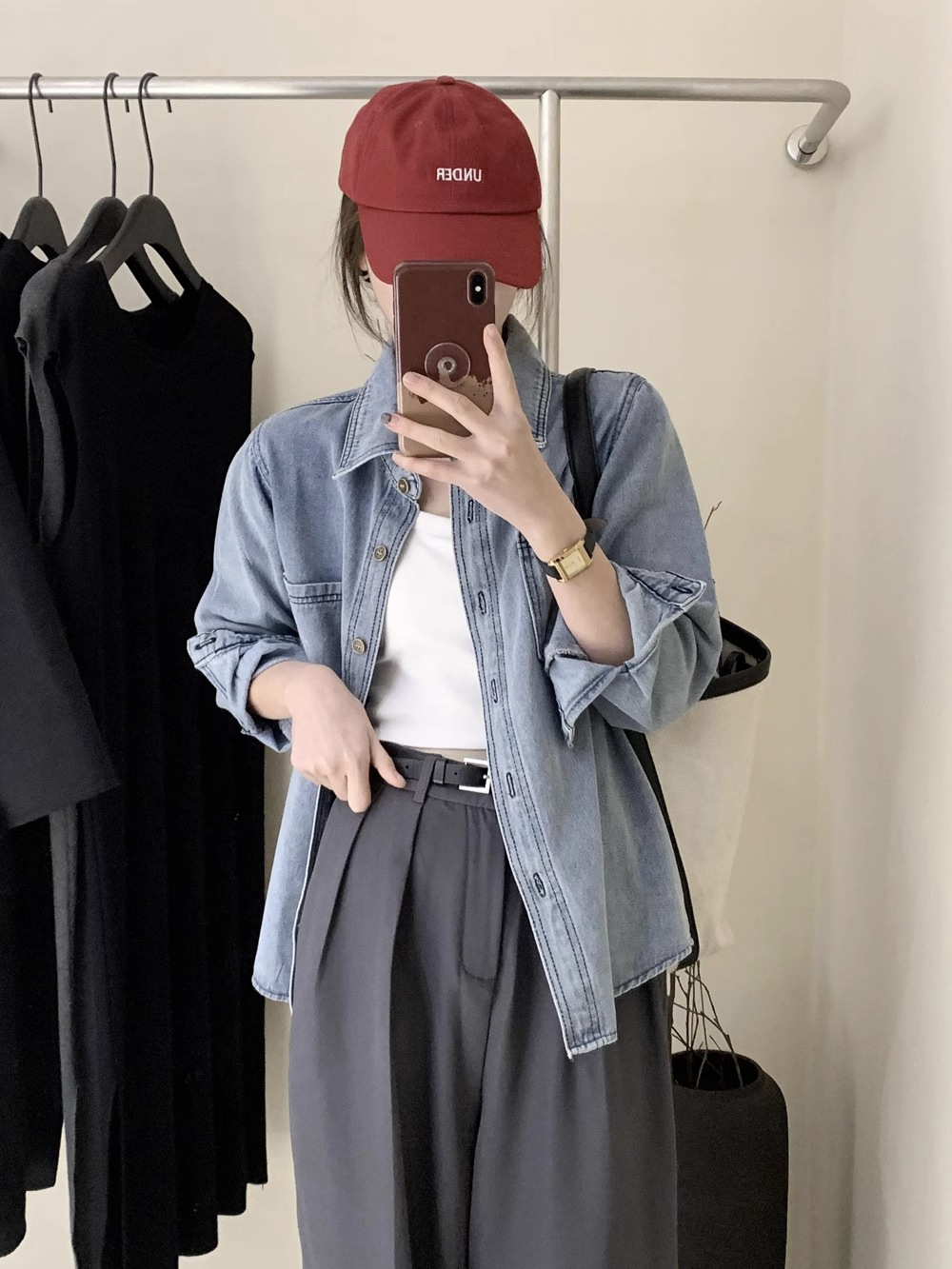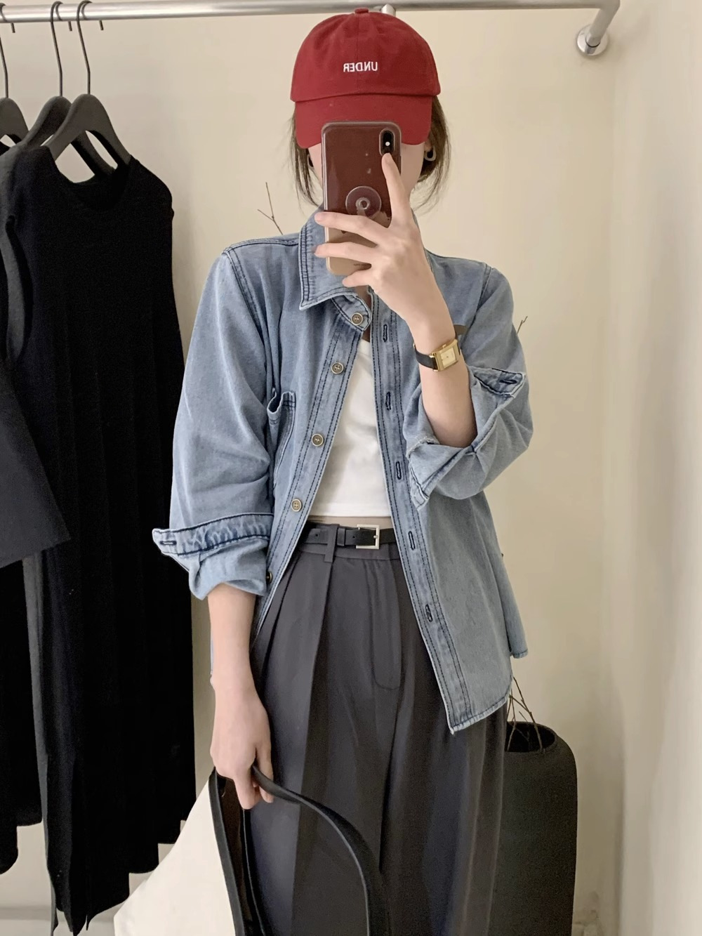 2024 데님 티셔츠 여자 올 매치 루즈 데님 셔츠 캐주얼 셔츠 데님 긴 소매 데님 코트 재킷스토어 가기