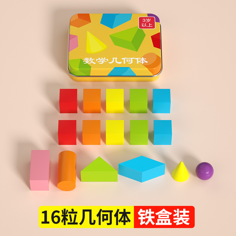 • 철제 상자에 담긴 입체 기하학 교구 16개