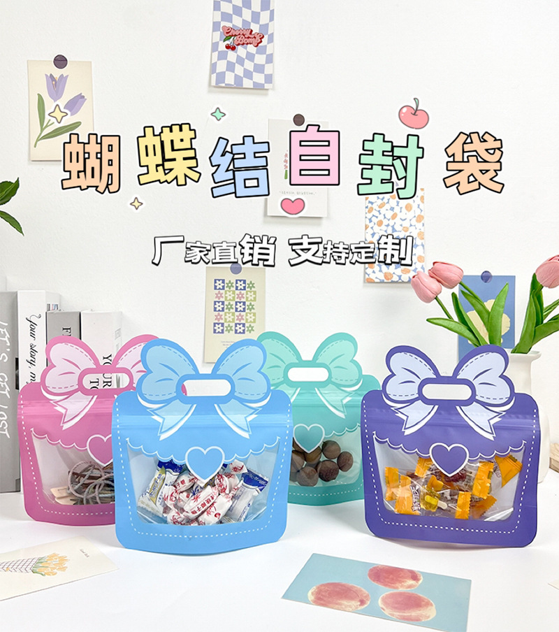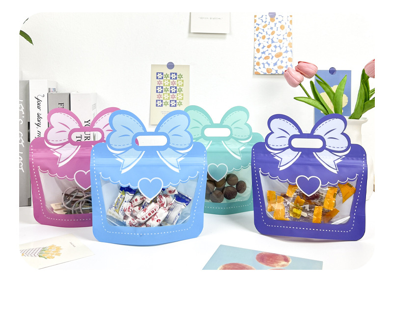 귀여운 활 플라스틱 휴대용 자립 가방 간식 선물 가방 어린이 고급 감각 동반 선물 가방 선물 가방