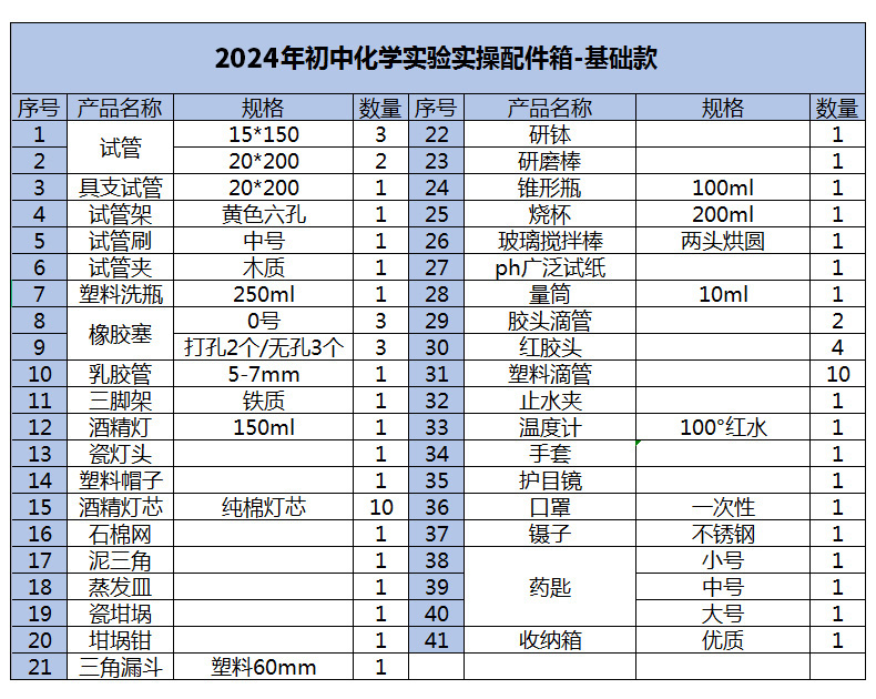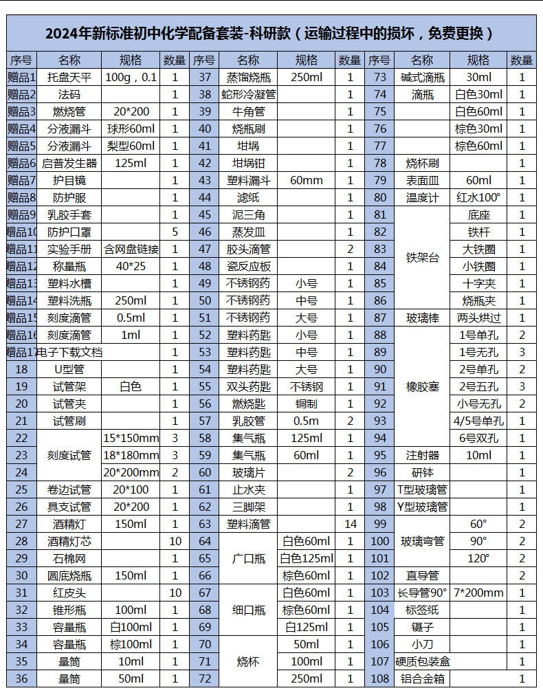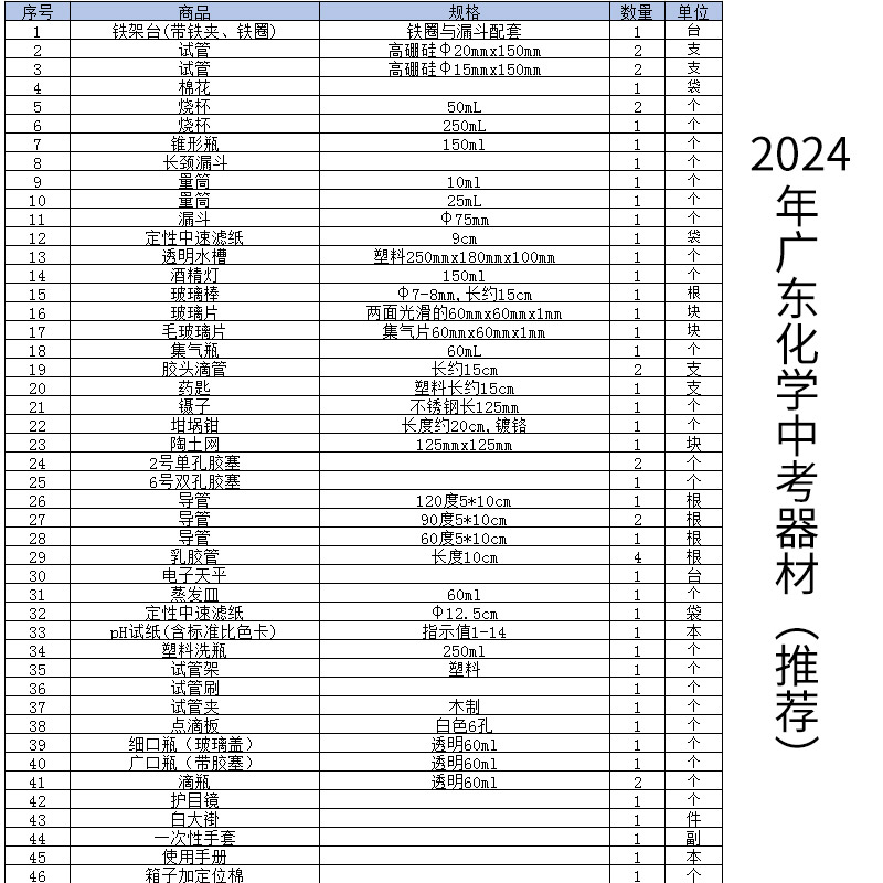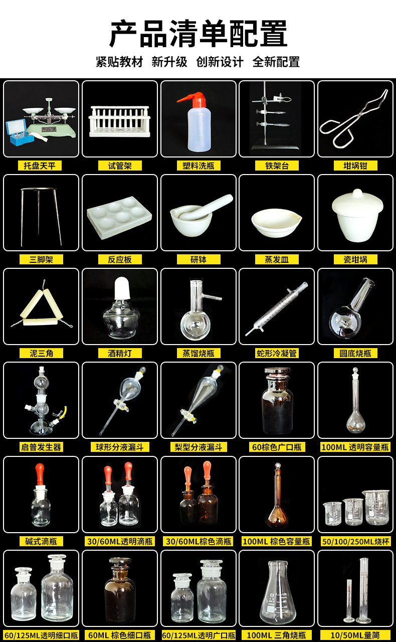 2024 신판 화학 실험 세트 중학교 학생들 고등학교 화학 실험 장비 9 년 동안 실험 도구의 전체 세트