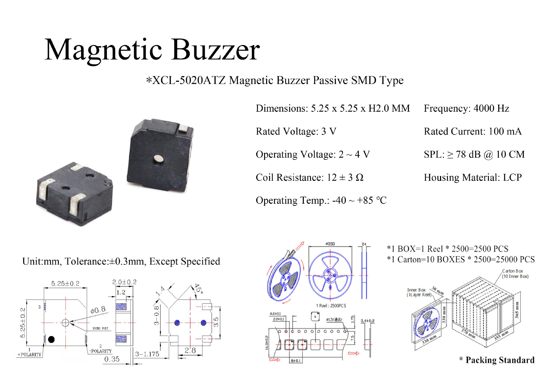 XCL-5020ATZ SMD 버저 3V 패시브 12R4K 중간 구멍 마사지 전동 칫솔 특수 SMT스토어 가기