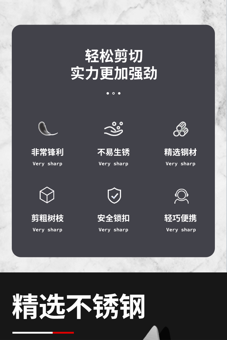 • 강력한 대형 손잡이 팔꿈치 + 직선 전지가위
