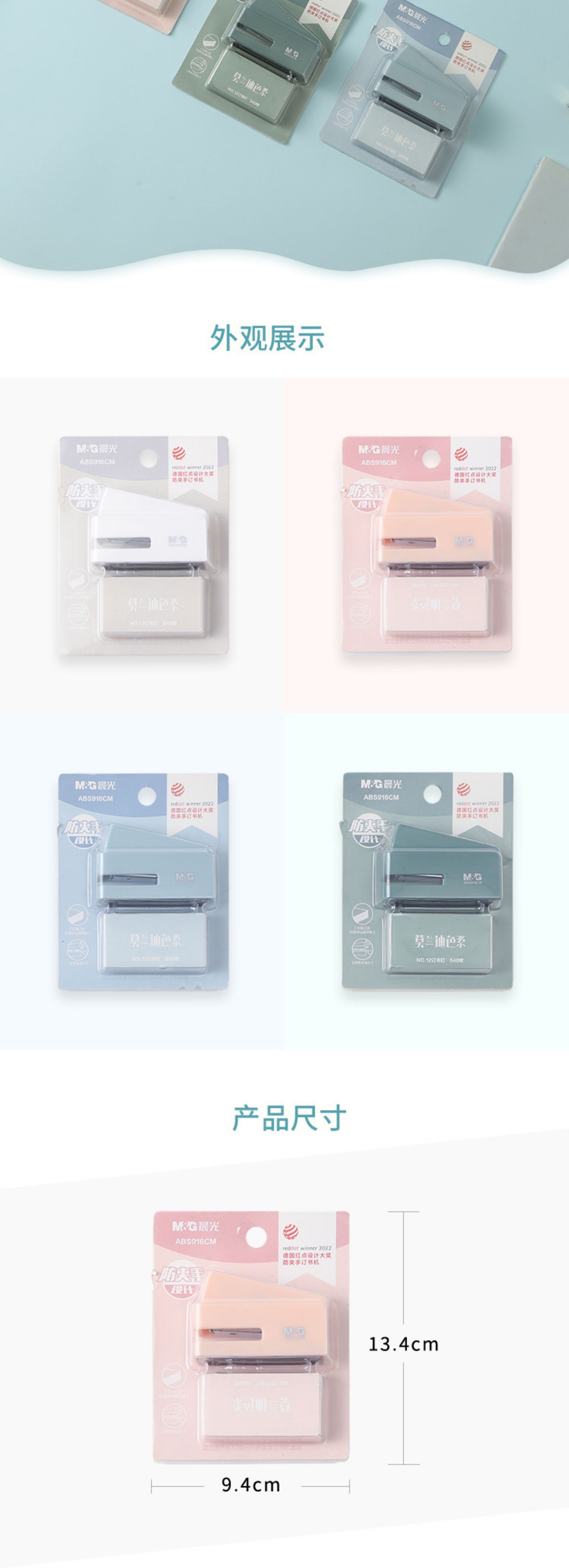 아침 빛 안티 핀치 핸드 세트 스테이플러 ABS916CM Morandi 미니 컴팩트 휴대용 사무실 학생 용품