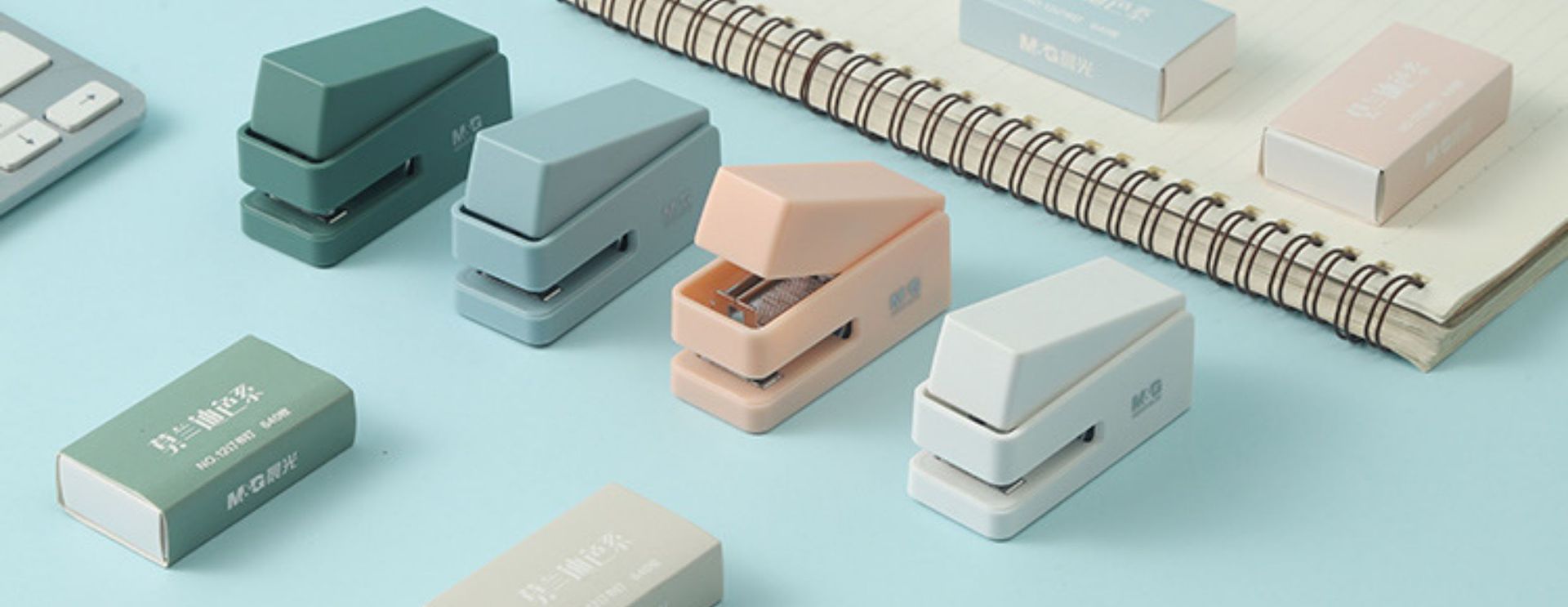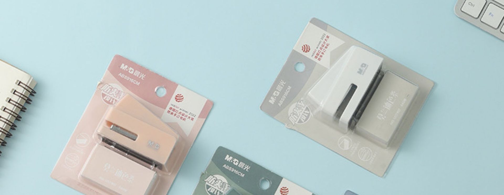 아침 빛 안티 핀치 핸드 세트 스테이플러 ABS916CM Morandi 미니 컴팩트 휴대용 사무실 학생 용품스토어 가기