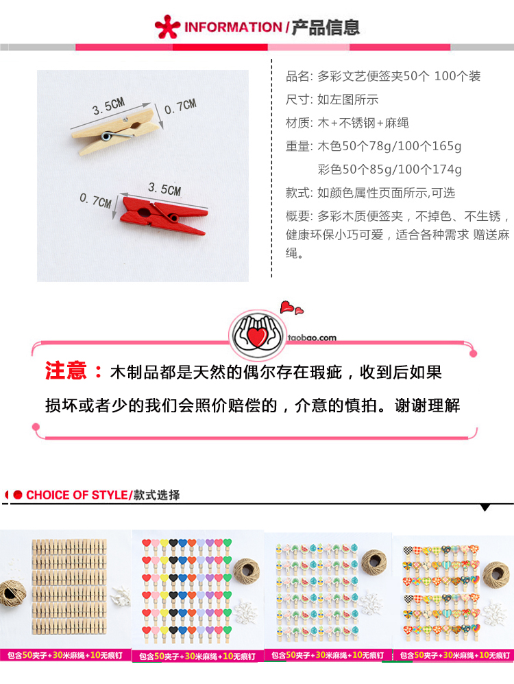 木制品都是天然的100个里面难免有一两个瑕疵(都是称称的做不到人工一个一个数的数量可能有一两个误差,如果数量少了或者快递损坏不能使用可以联系我们按照商品价值等额补差价给顾客,因为产品本身没有利润薄利多销,不接受其他其他特殊要求)如果介意的慎拍,