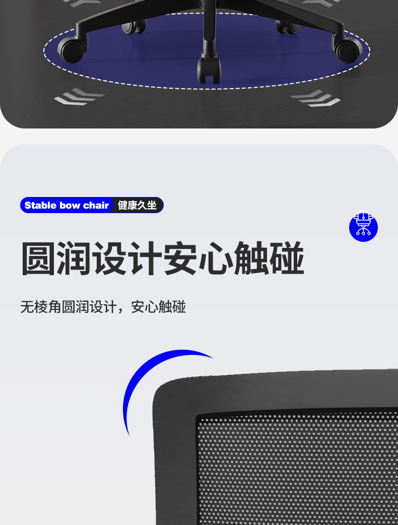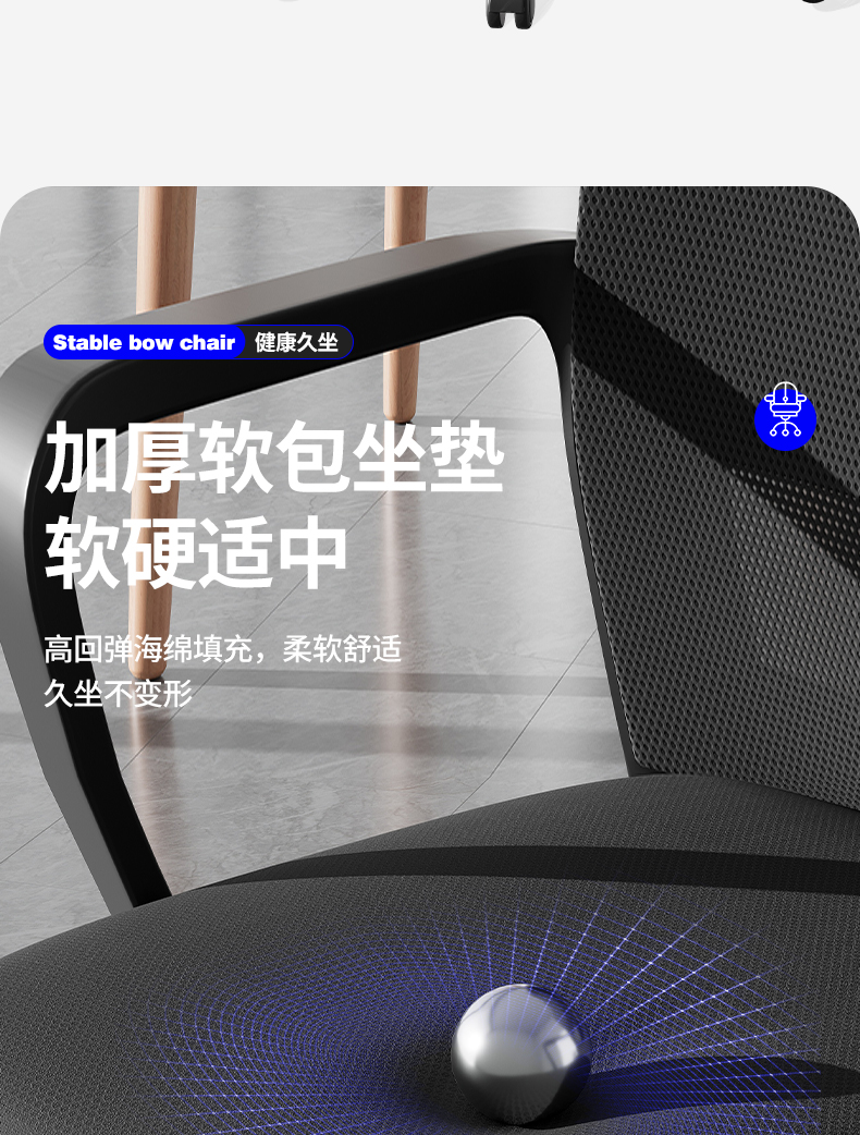 • [활형 모델] 스펀지 모델 - (넓고 두꺼운 허리걸레) 강화된 수평 버팀대 - 블랙 프레임 그레이 메쉬