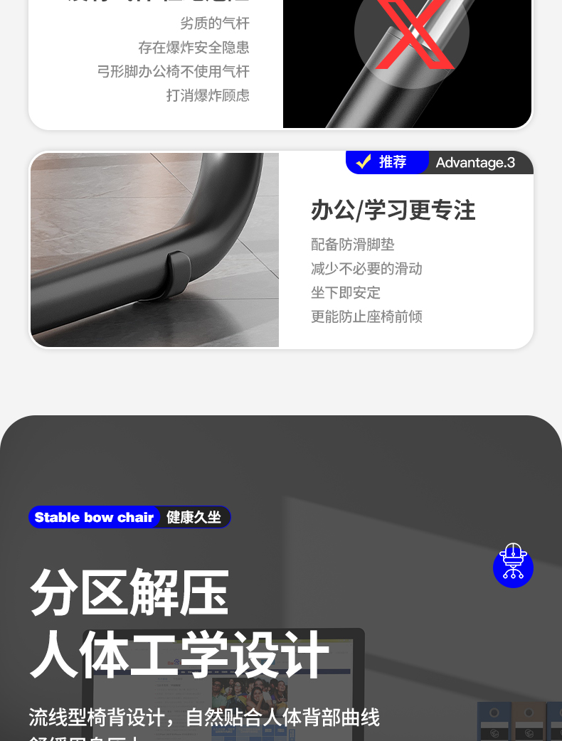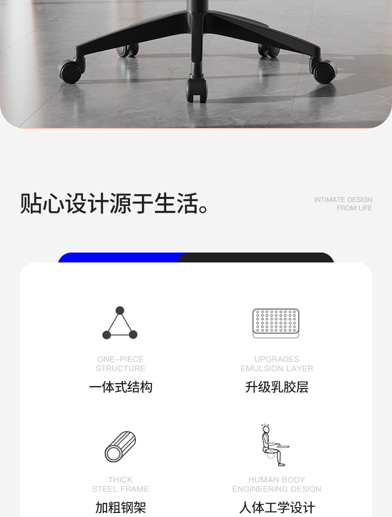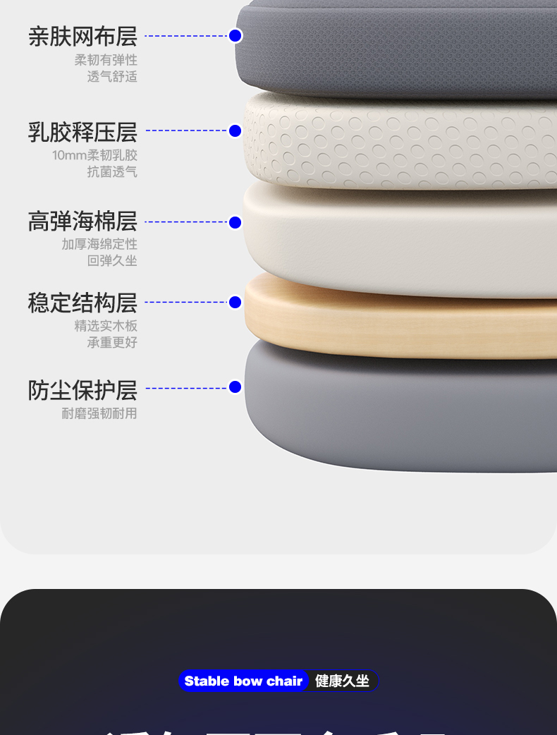 • [활형 모델] 라텍스 모델 - (넓고 두꺼운 허리걸레) 강화된 수평 버팀대 - 흰색 프레임 회색 메쉬