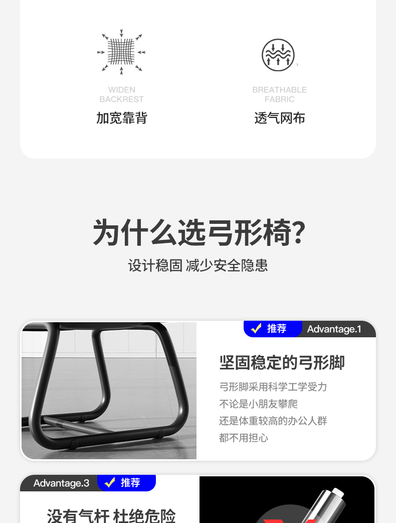 • [활형 모델] 라텍스 모델 - (넓고 두꺼운 허리걸레) 강화된 수평 버팀대 - 흰색 프레임과 검정색 메쉬