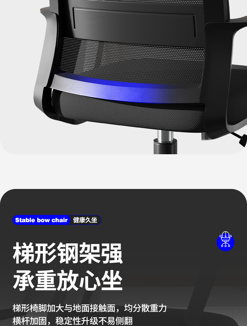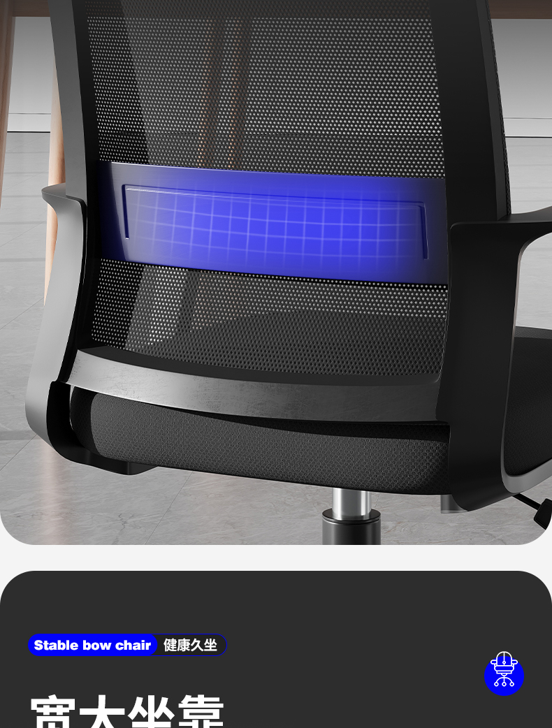 • [활머리받침형] 스펀지형 - (넓고 두꺼운 허리걸레) 강화된 가로 지지대 - 블랙 프레임 블랙 메쉬