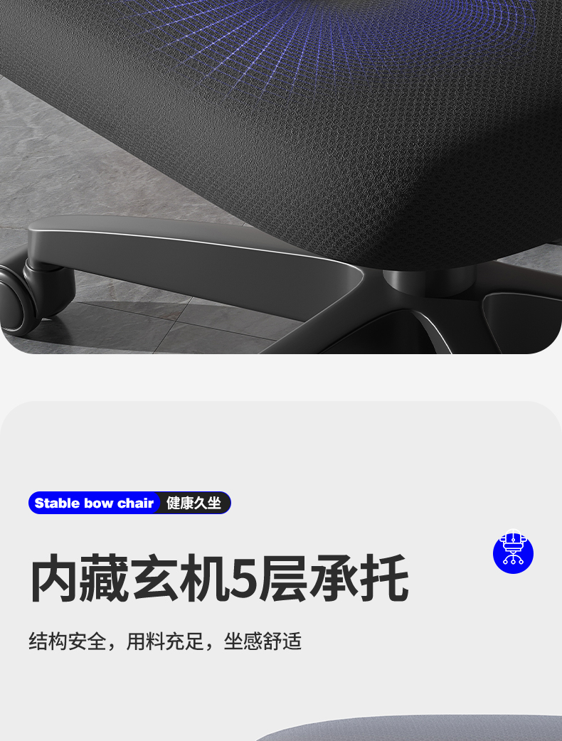 • [활형 모델] 라텍스 모델 - (넓고 두꺼운 허리걸레) 강화된 수평 버팀대 - 블랙 프레임 그레이 메쉬