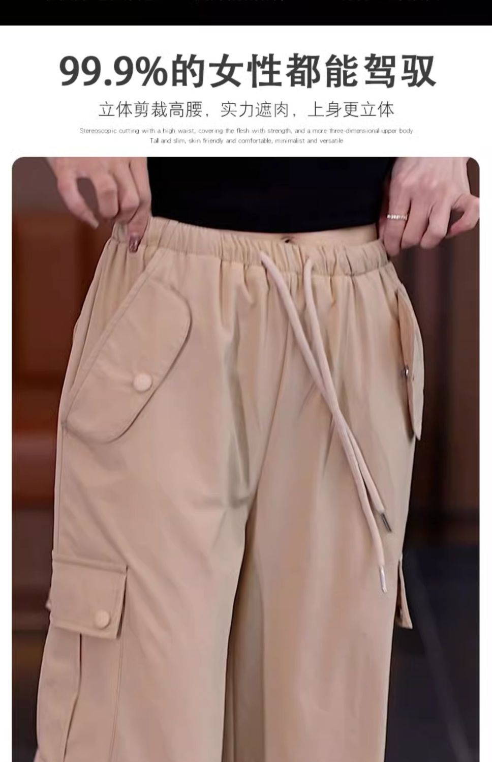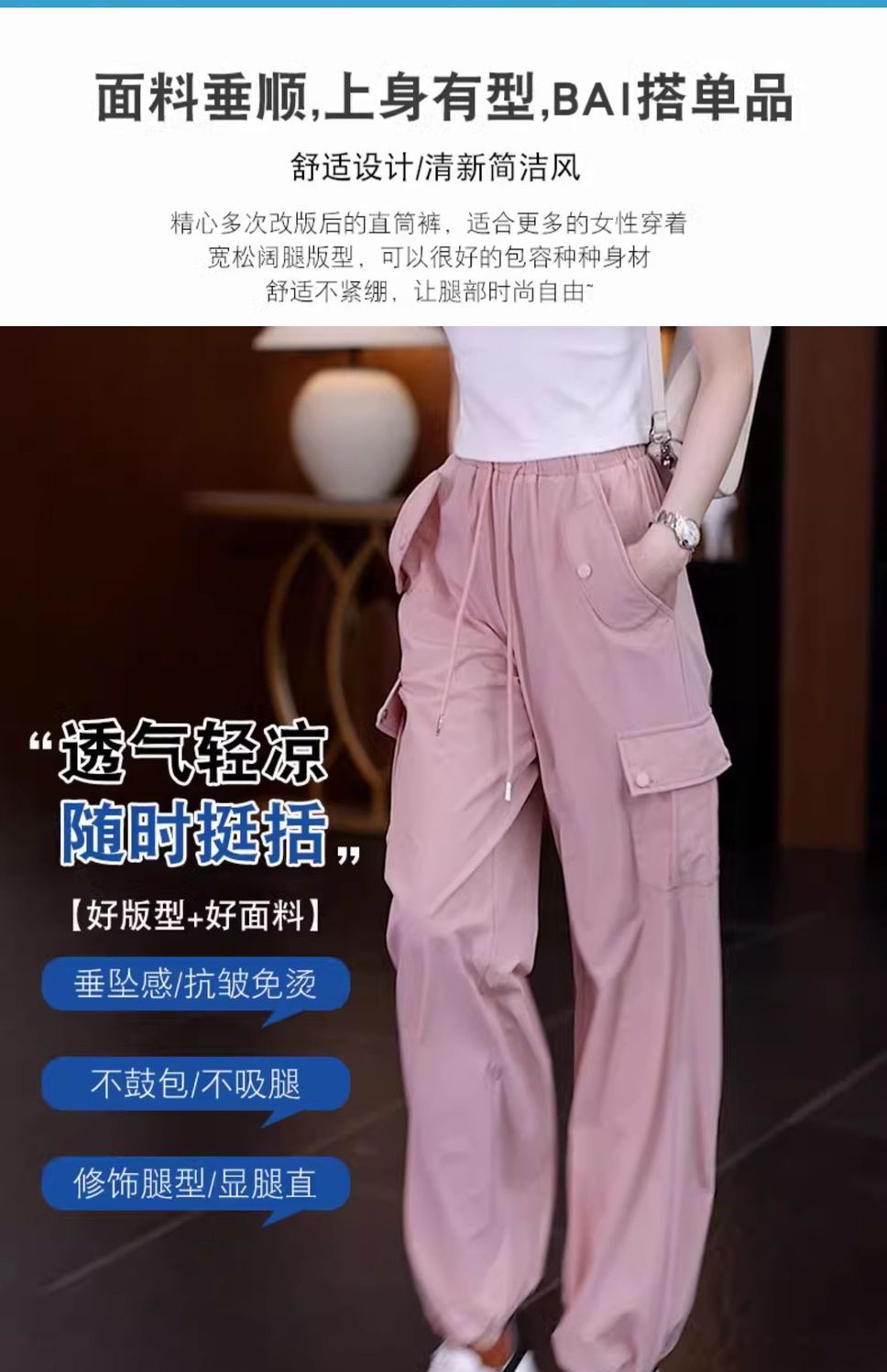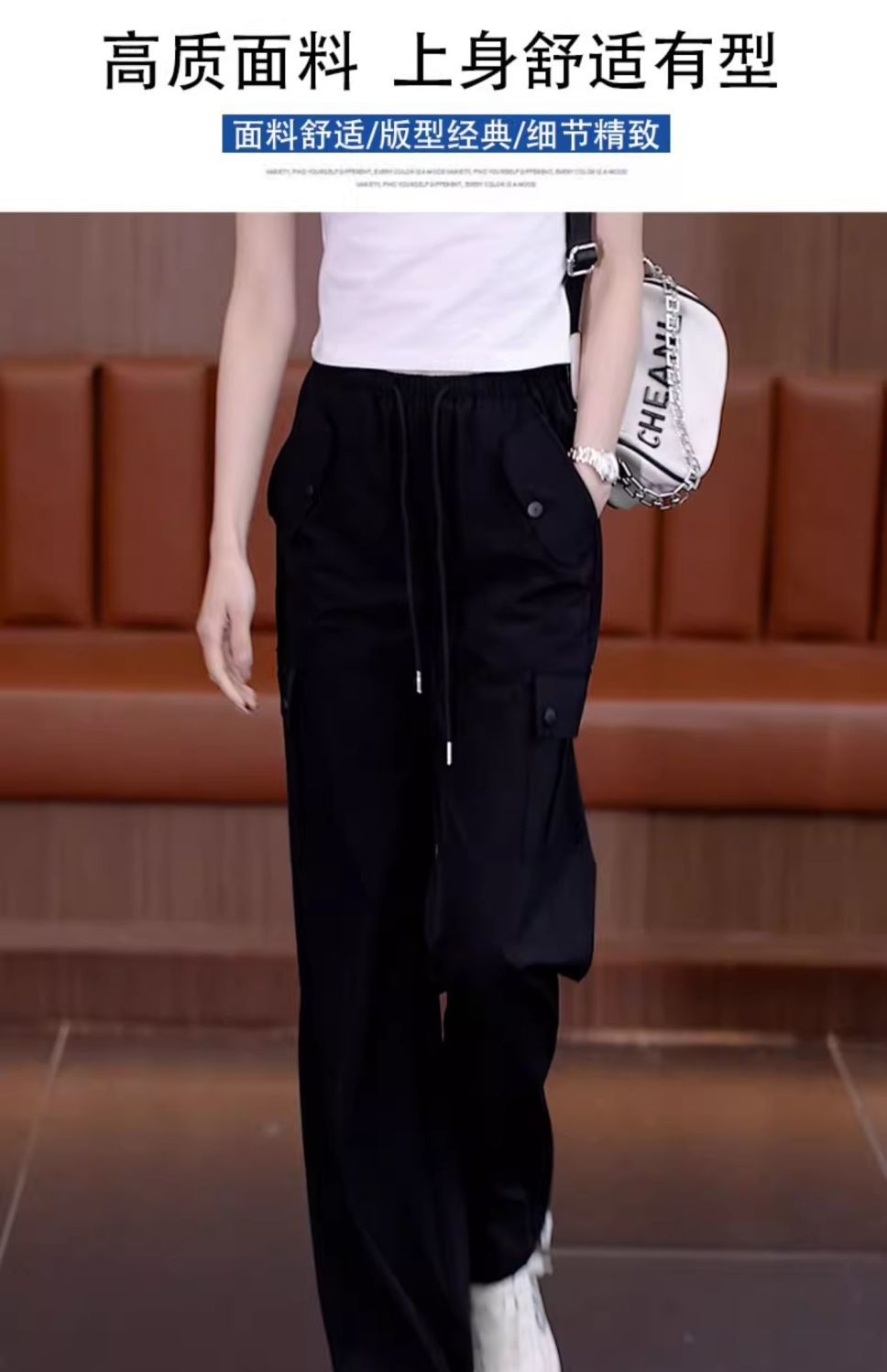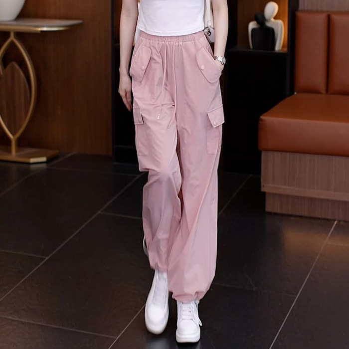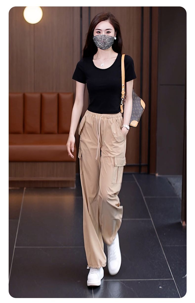 아메리칸 스타일 오버홀 여성 여름 2024 새로운 느슨한 캐주얼 발 등산 스포츠 바지 높은 허리 스트레이트 와이드 다리 바지스토어 가기