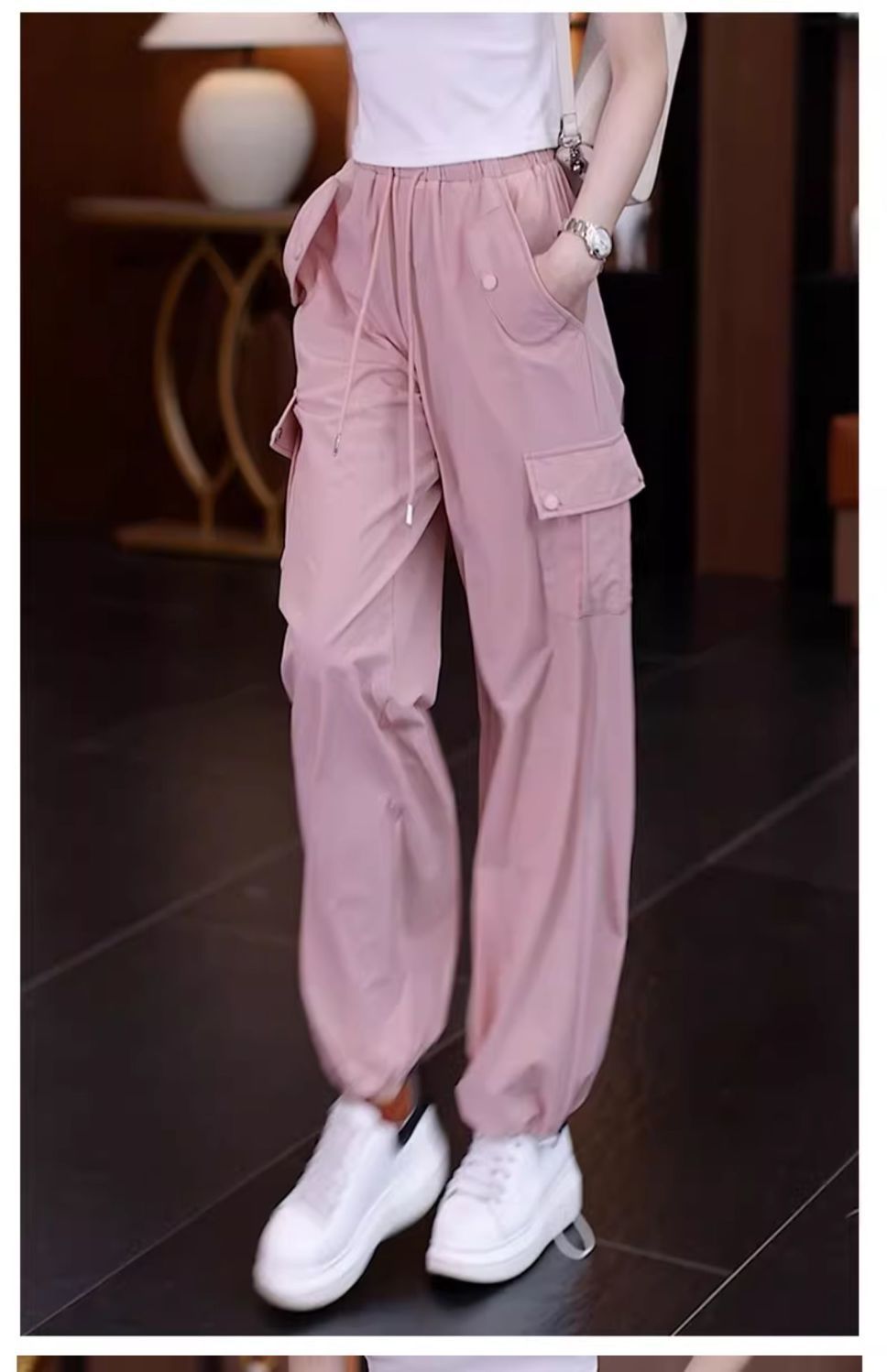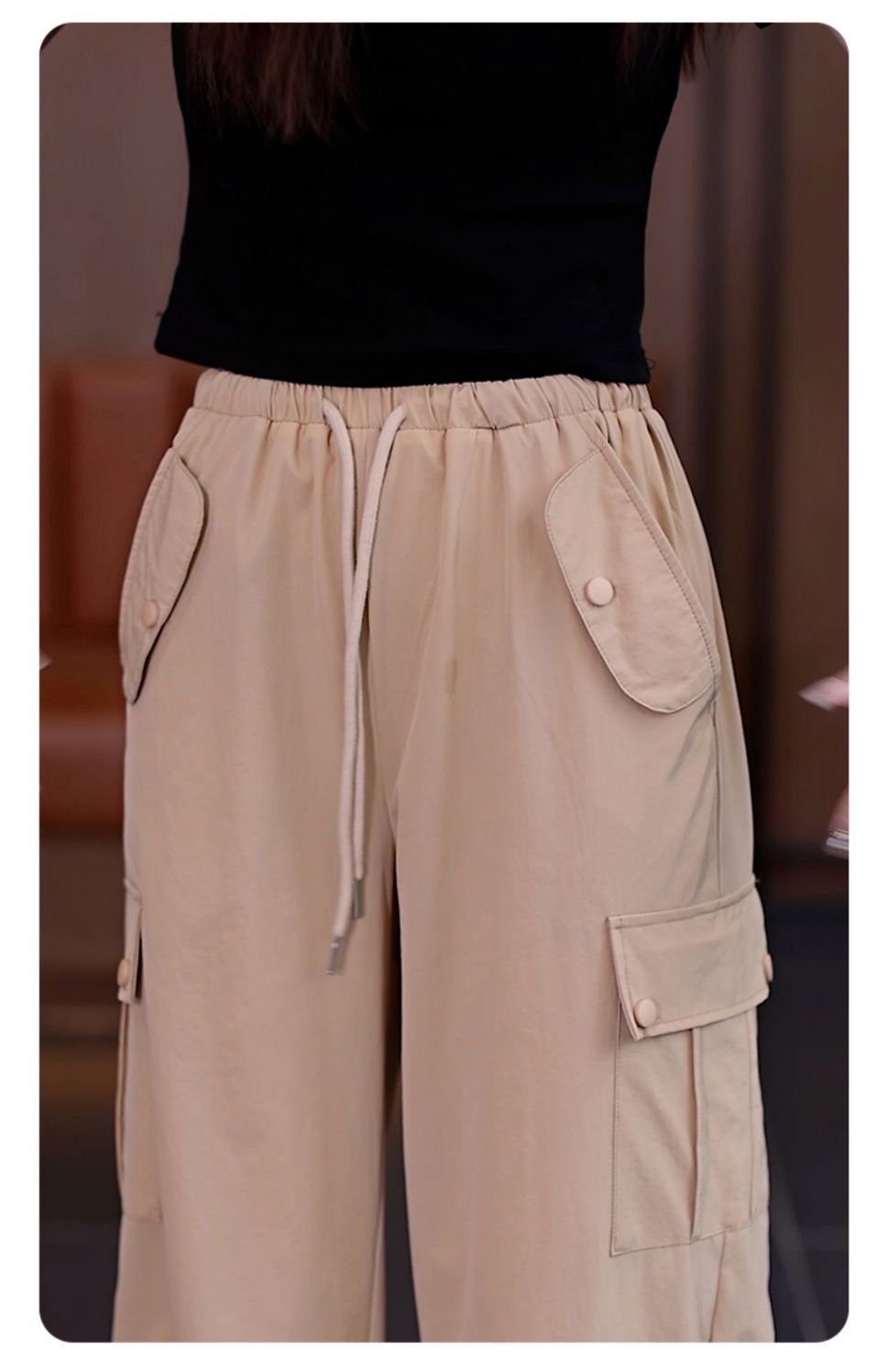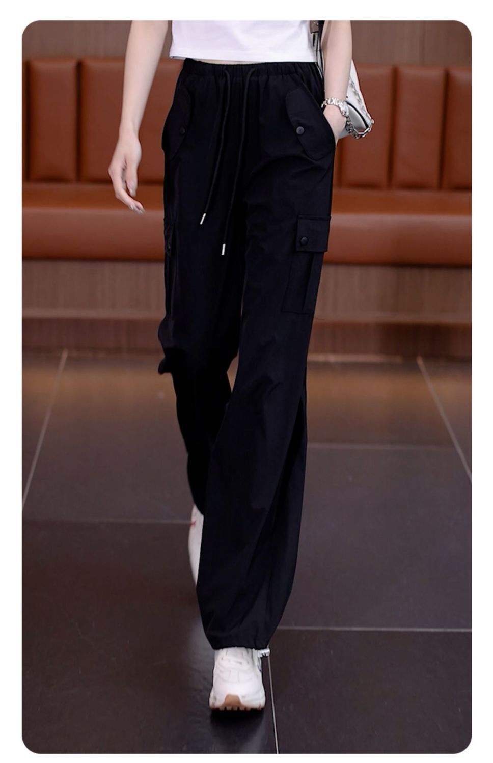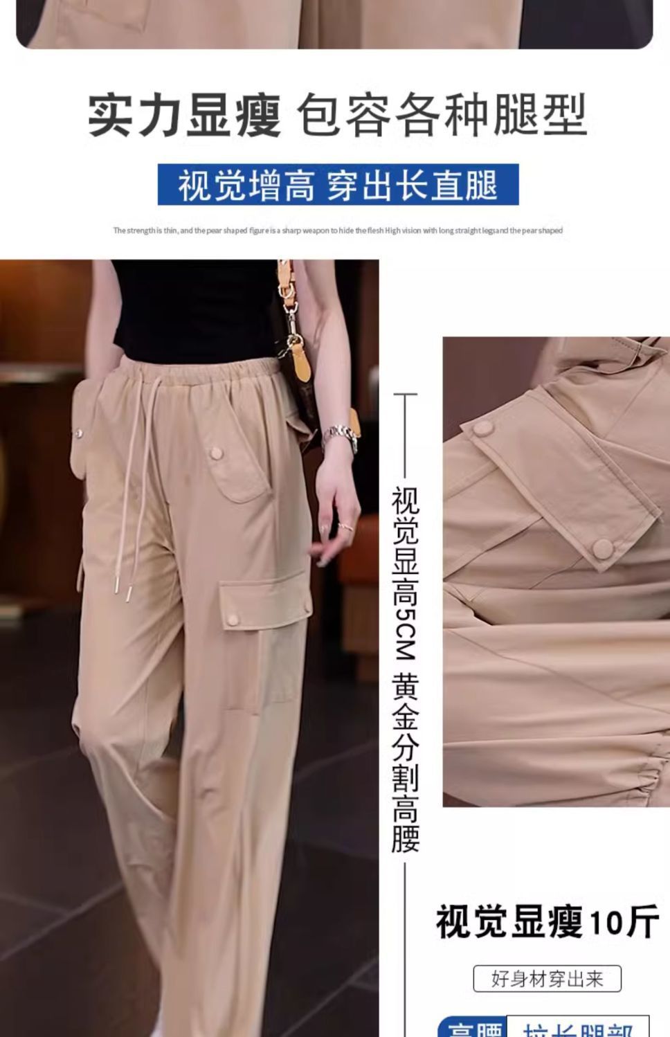 아메리칸 스타일 오버홀 여성 여름 2024 새로운 느슨한 캐주얼 발 등산 스포츠 바지 높은 허리 스트레이트 와이드 다리 바지스토어 가기