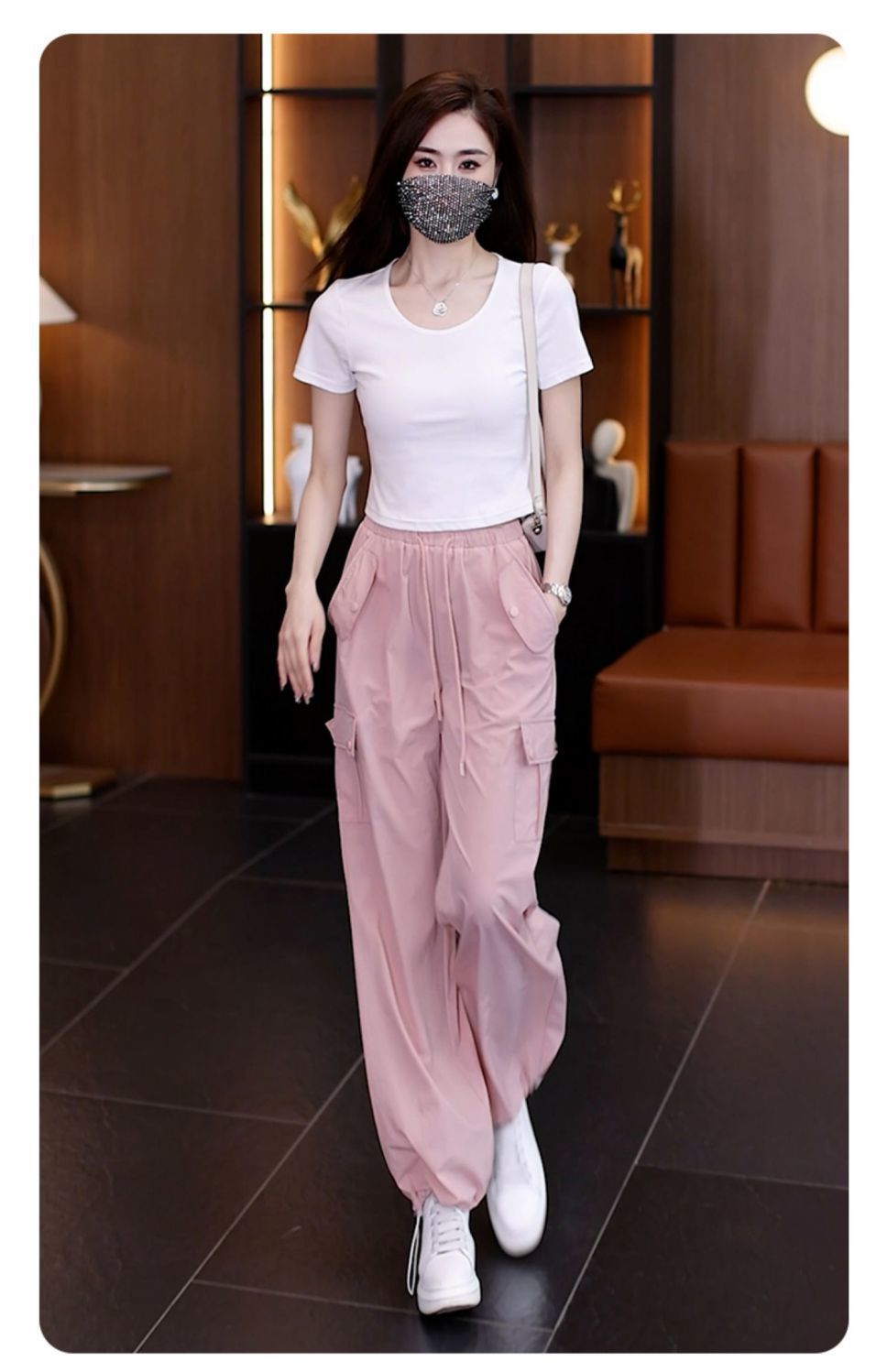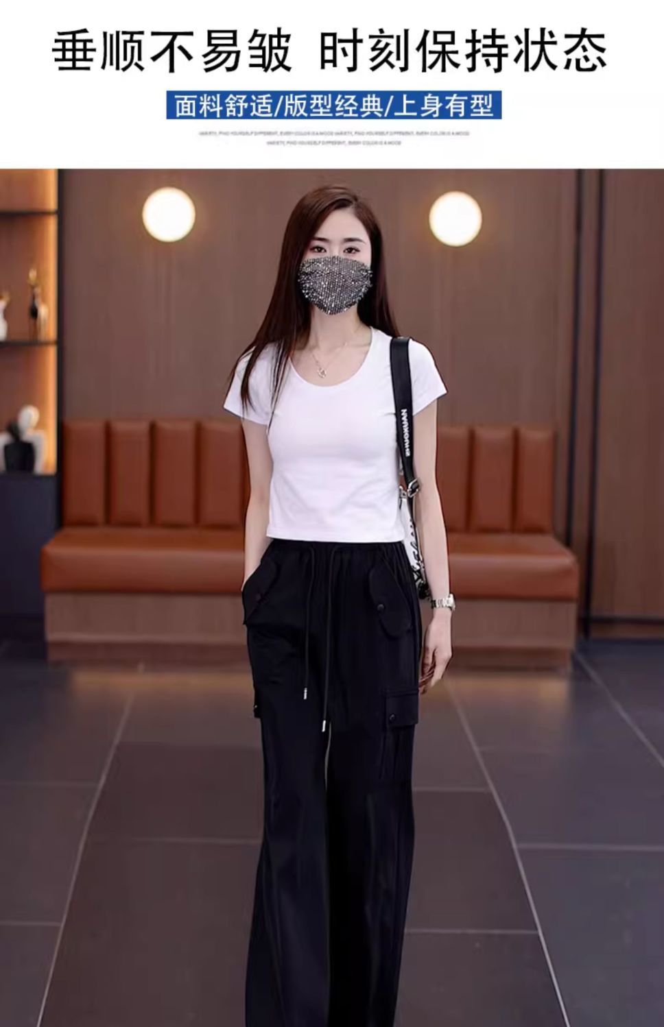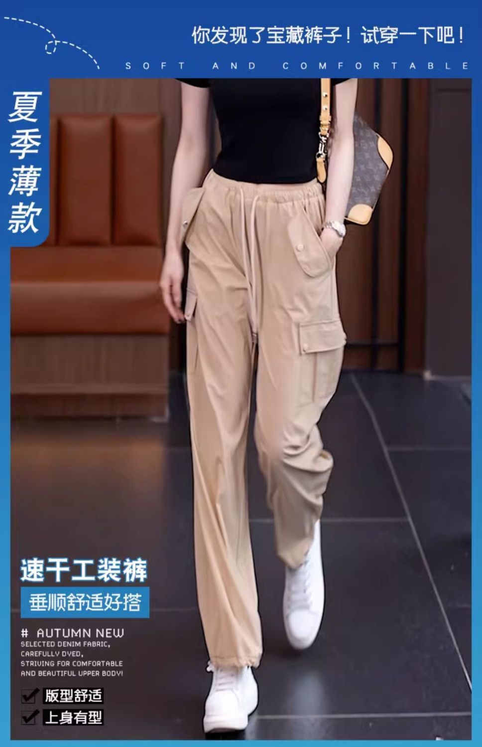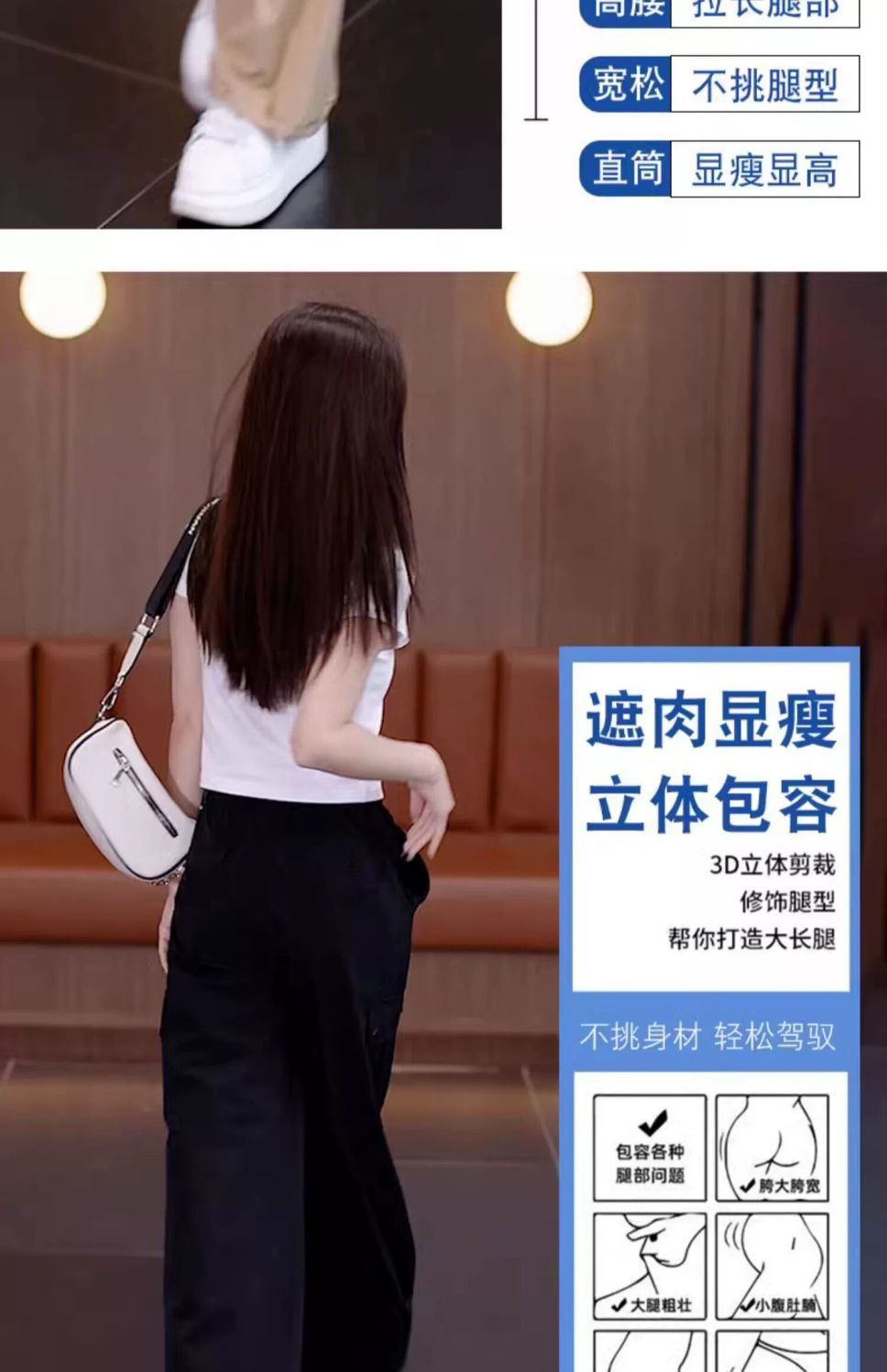 아메리칸 스타일 오버홀 여성 여름 2024 새로운 느슨한 캐주얼 발 등산 스포츠 바지 높은 허리 스트레이트 와이드 다리 바지스토어 가기