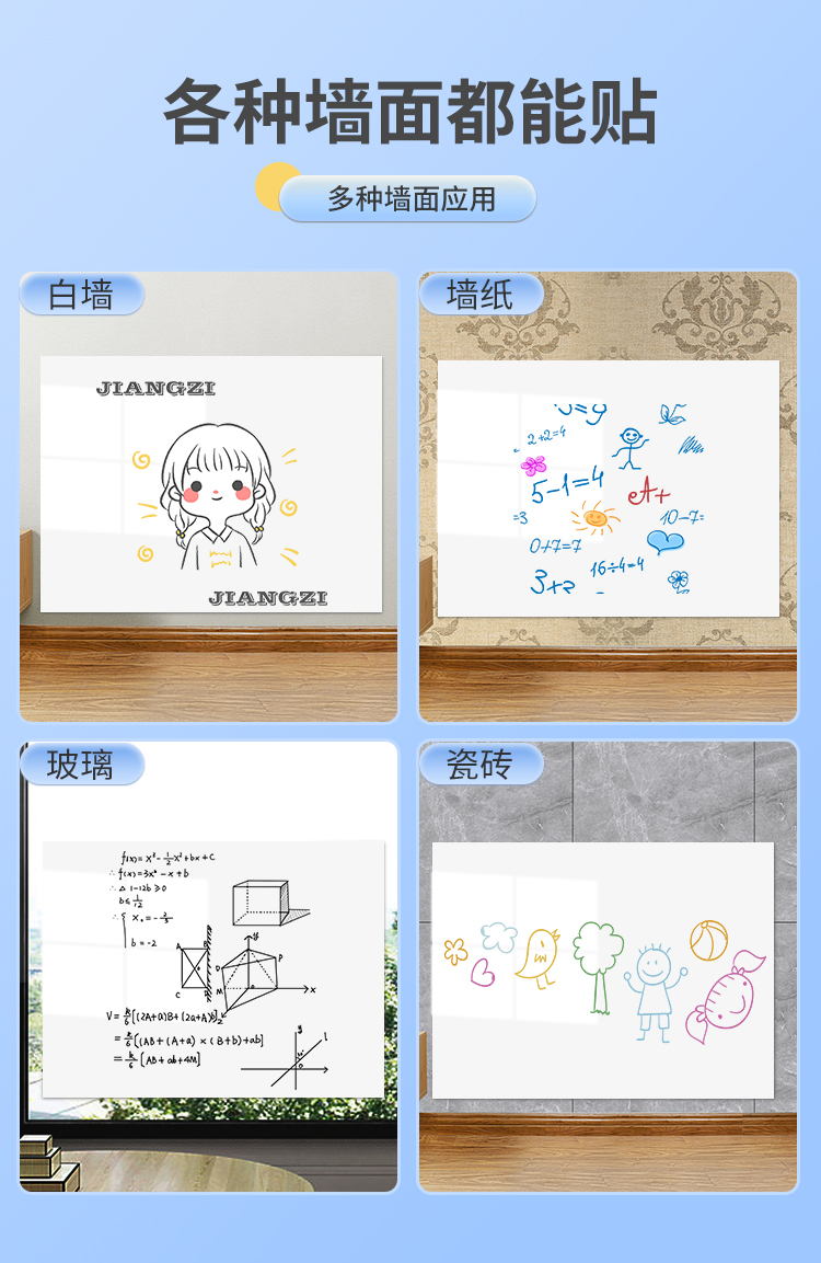정전기 화이트 보드 스티커 어린이 방 이동식 낙서 벽 스티커는 벽화를 해치지 않습니다 흡착 보드 벽 스티커스토어 가기