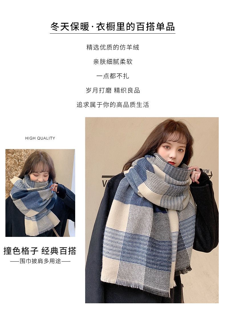 새로운 일본식 블루 스타일 캐시미어 스카프 여성 폭발성 온라인 인기 겨울 여성 겨울 학생 한국식 클래식 격자 무늬스토어 가기