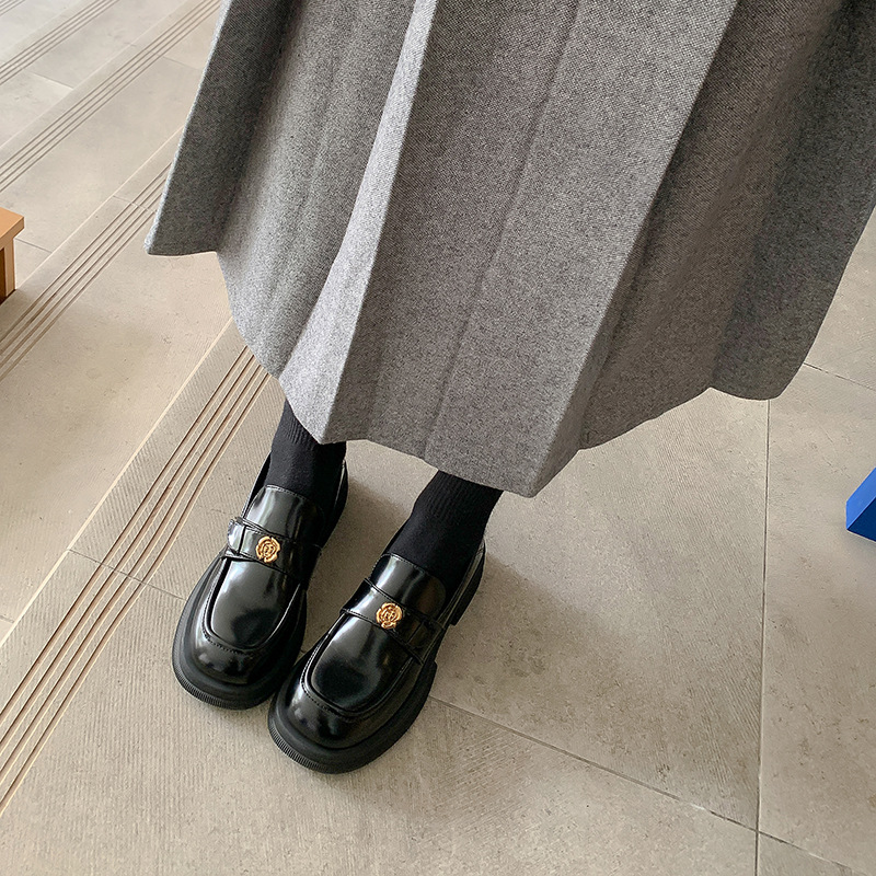 포도 엄마 같은 두꺼운 밑창 싱글 레이어 신발 여성의 2024 가을 영국 스타일의 정품 가죽 작은 금화 두꺼운 힐 올 매치 Lefu 작은 가죽 신발스토어 가기