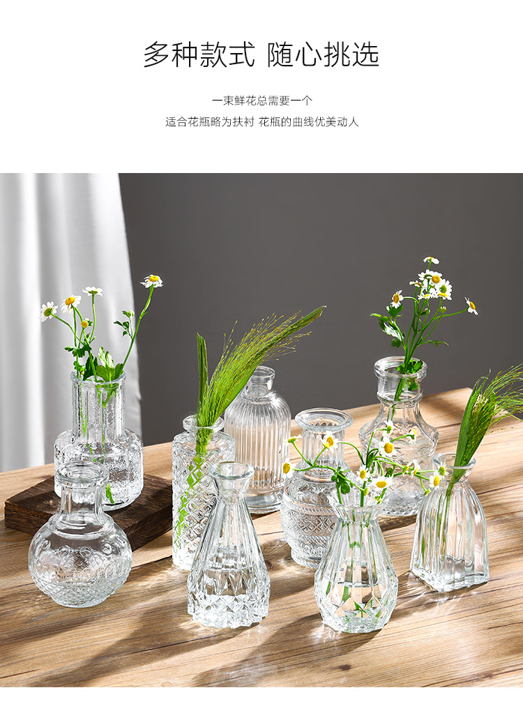 북유럽 절묘한 유리 꽃병 도매 공장 물 제기 꽃 장식 미니 작은 꽃병 높은 감각 꽃 장식품스토어 가기